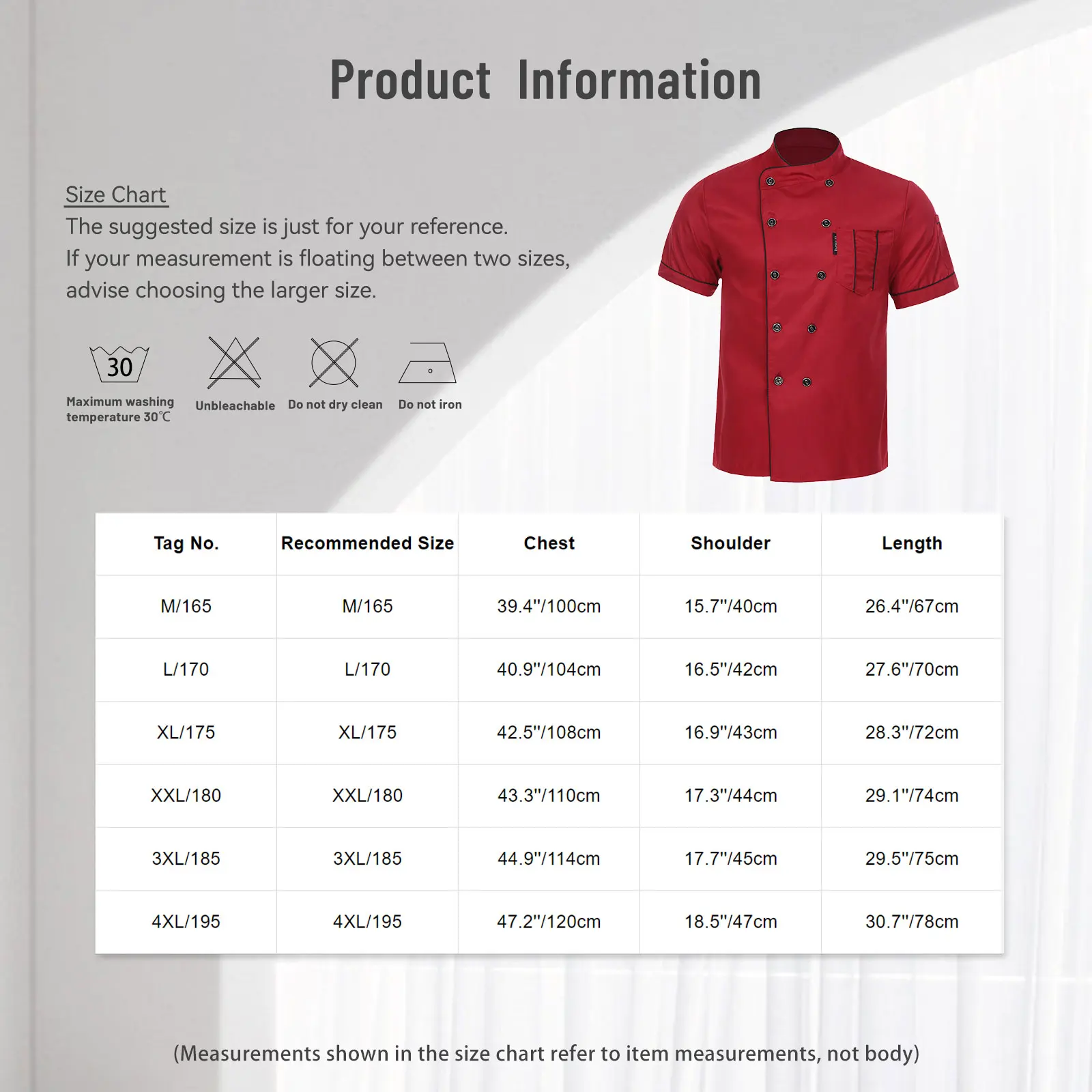 (Measurements shown in the size chart refer to item measurements, not body)