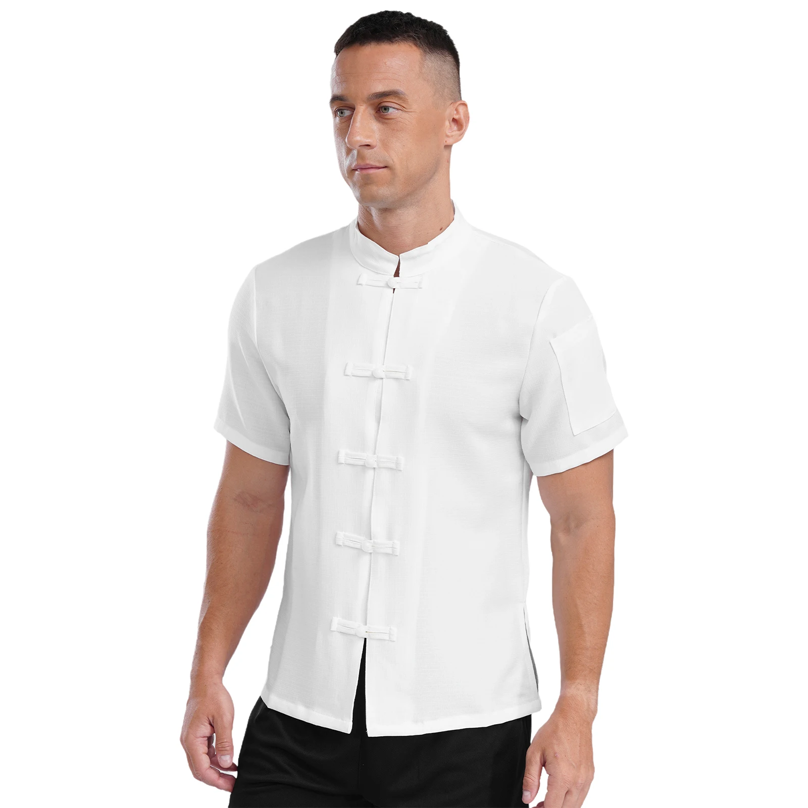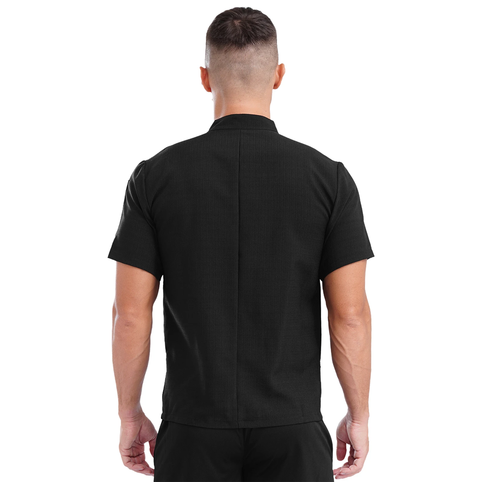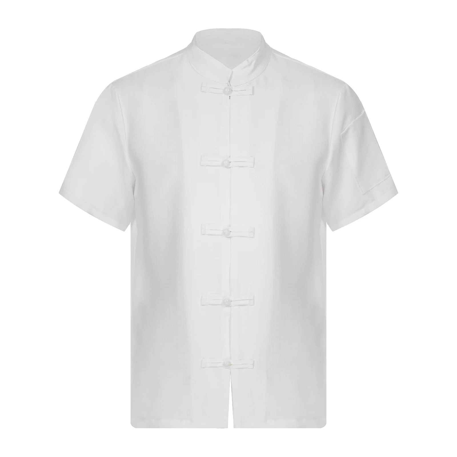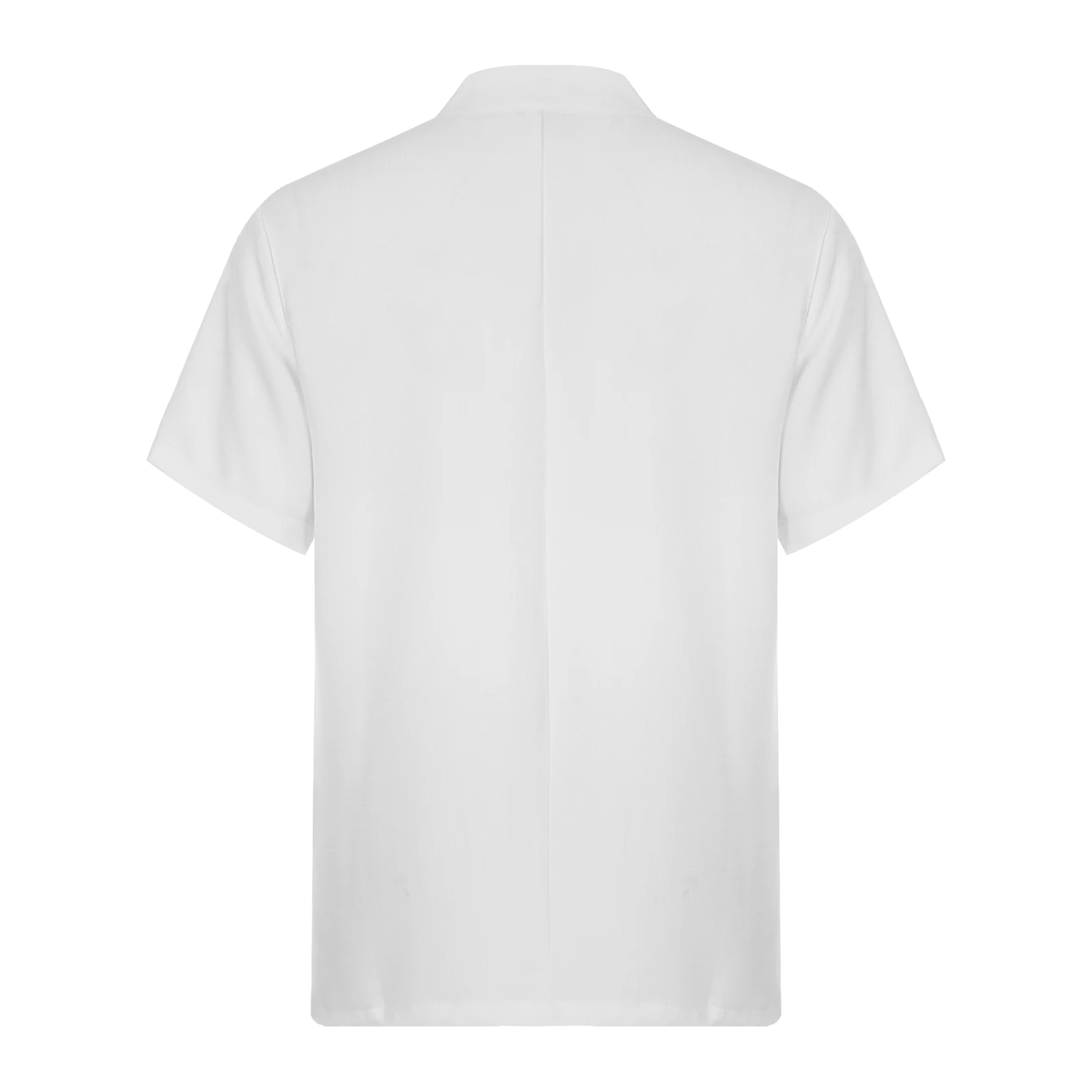 Short sleeve chef jacket with Chinese traditional knot buttons and mandarin collar looks simple but classy.