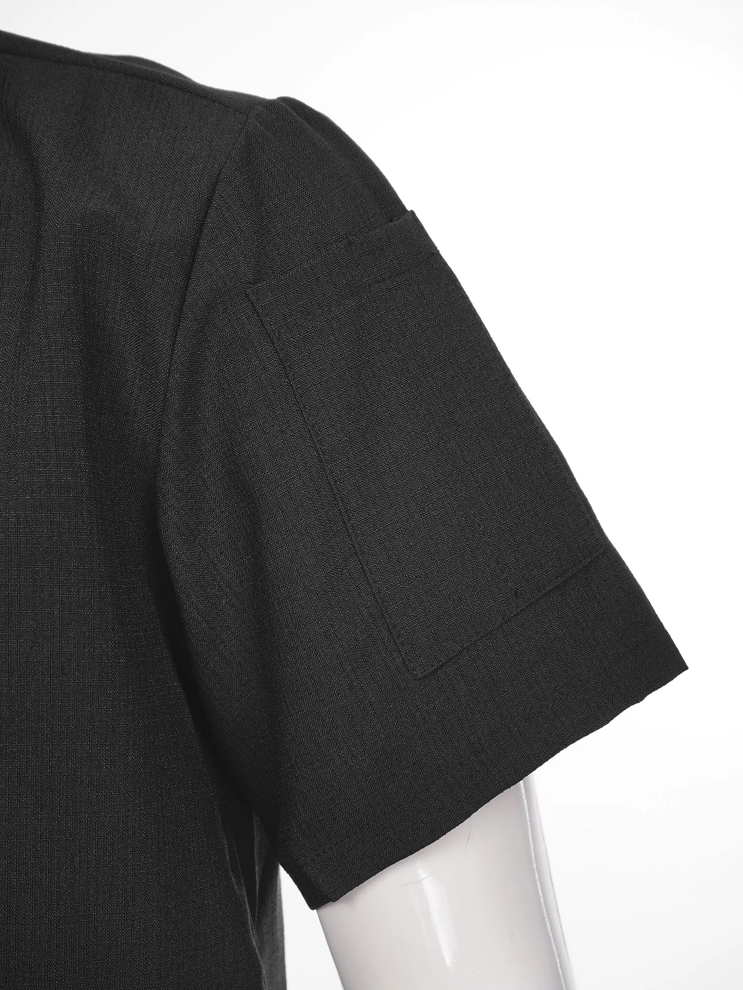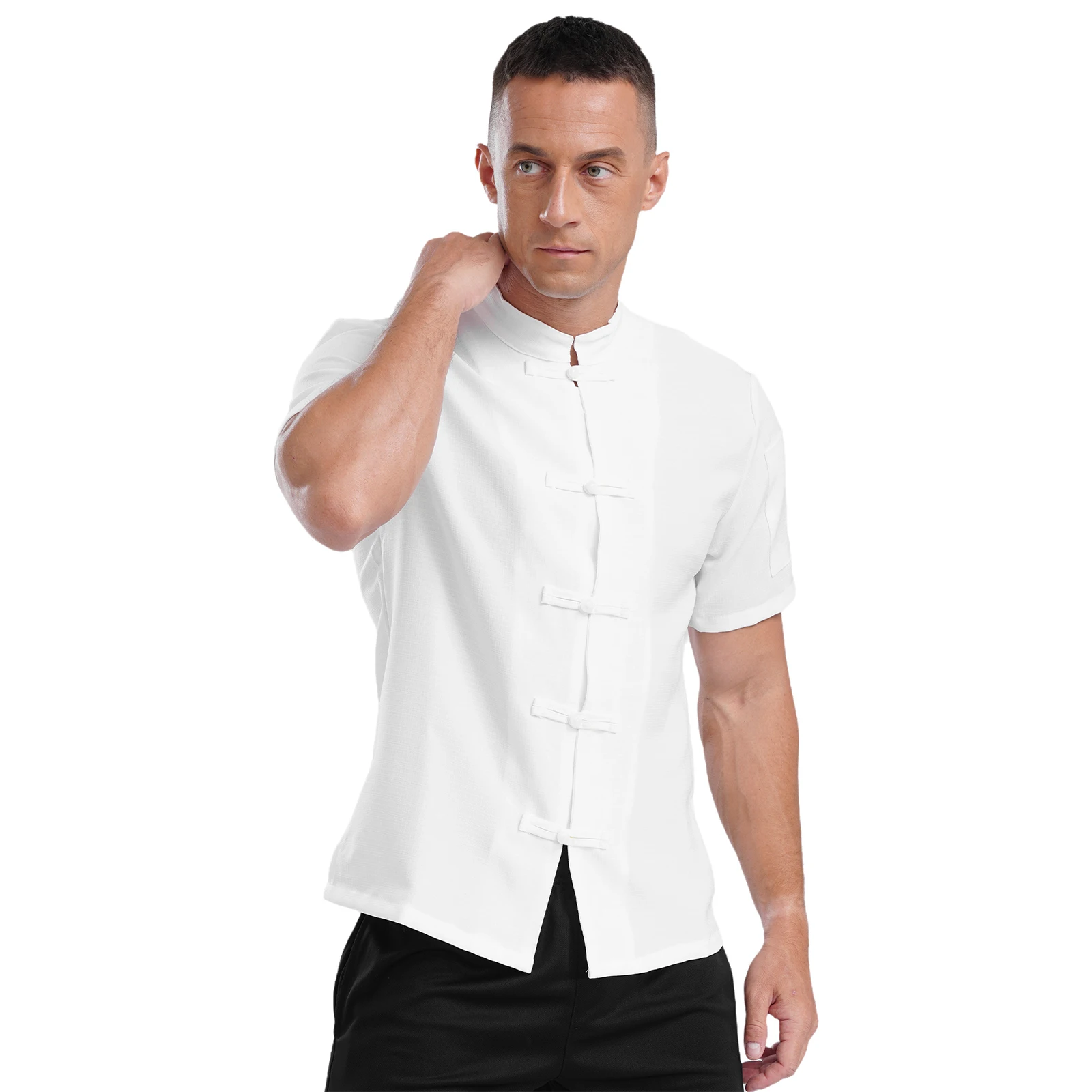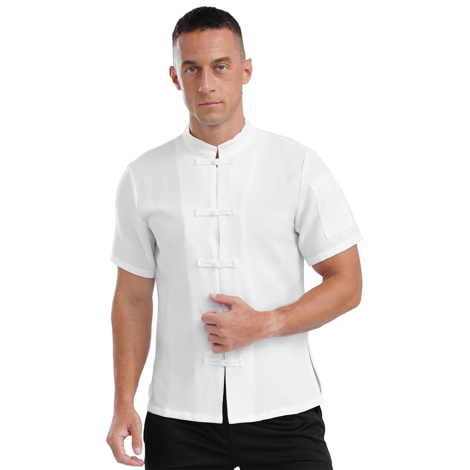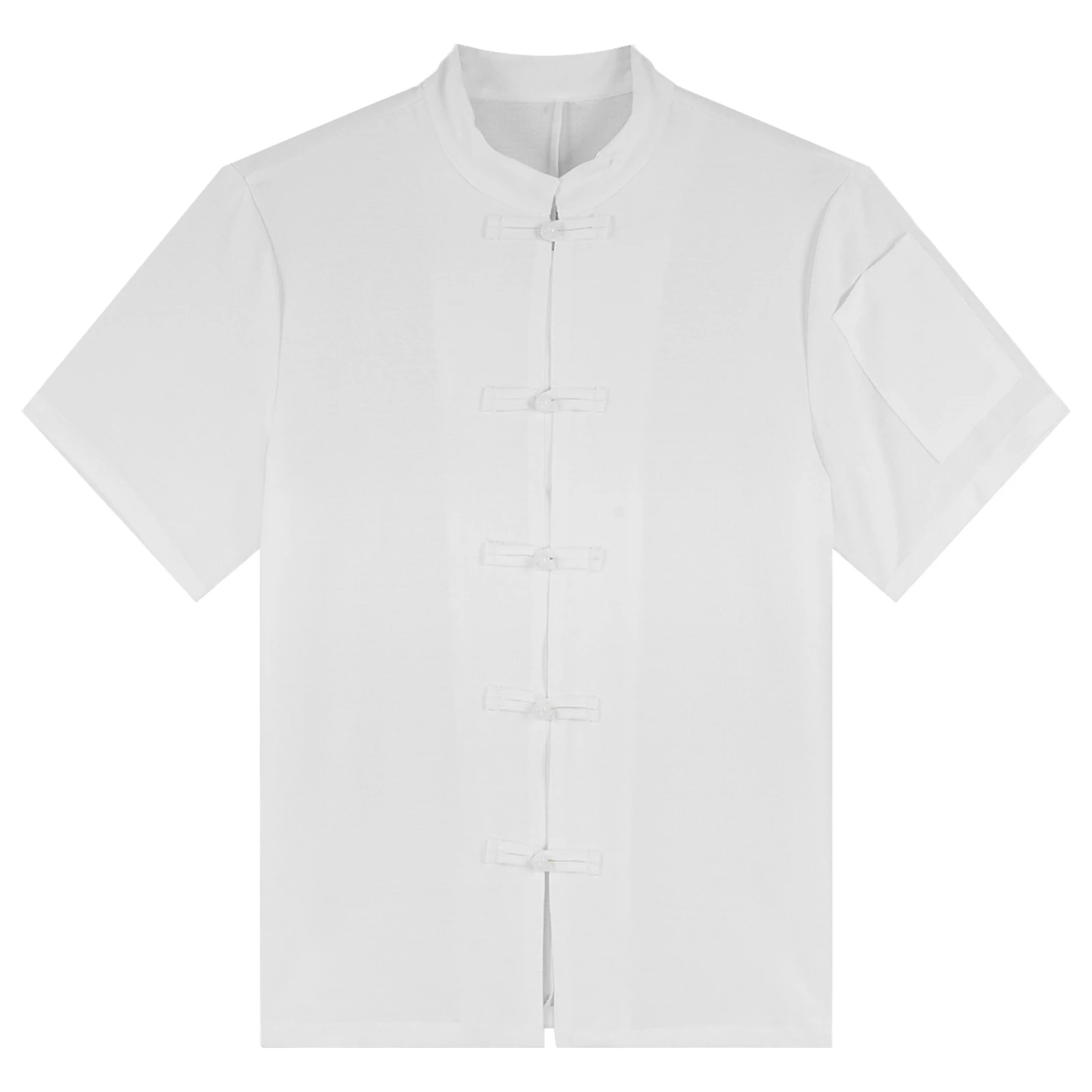 Short sleeve chef jacket with Chinese traditional knot buttons and mandarin collar looks simple but classy.