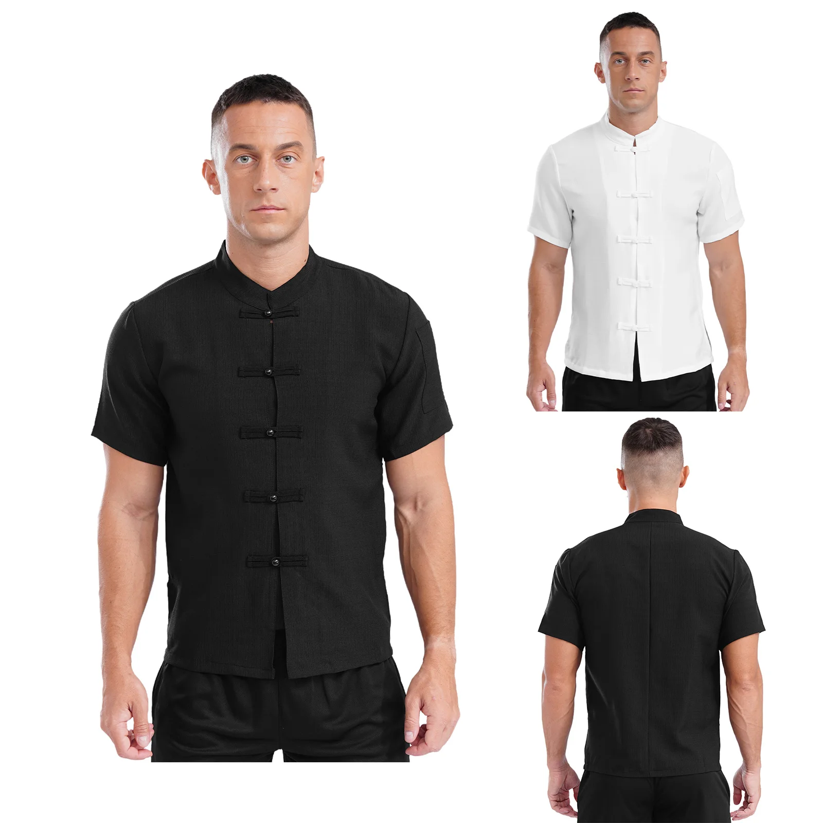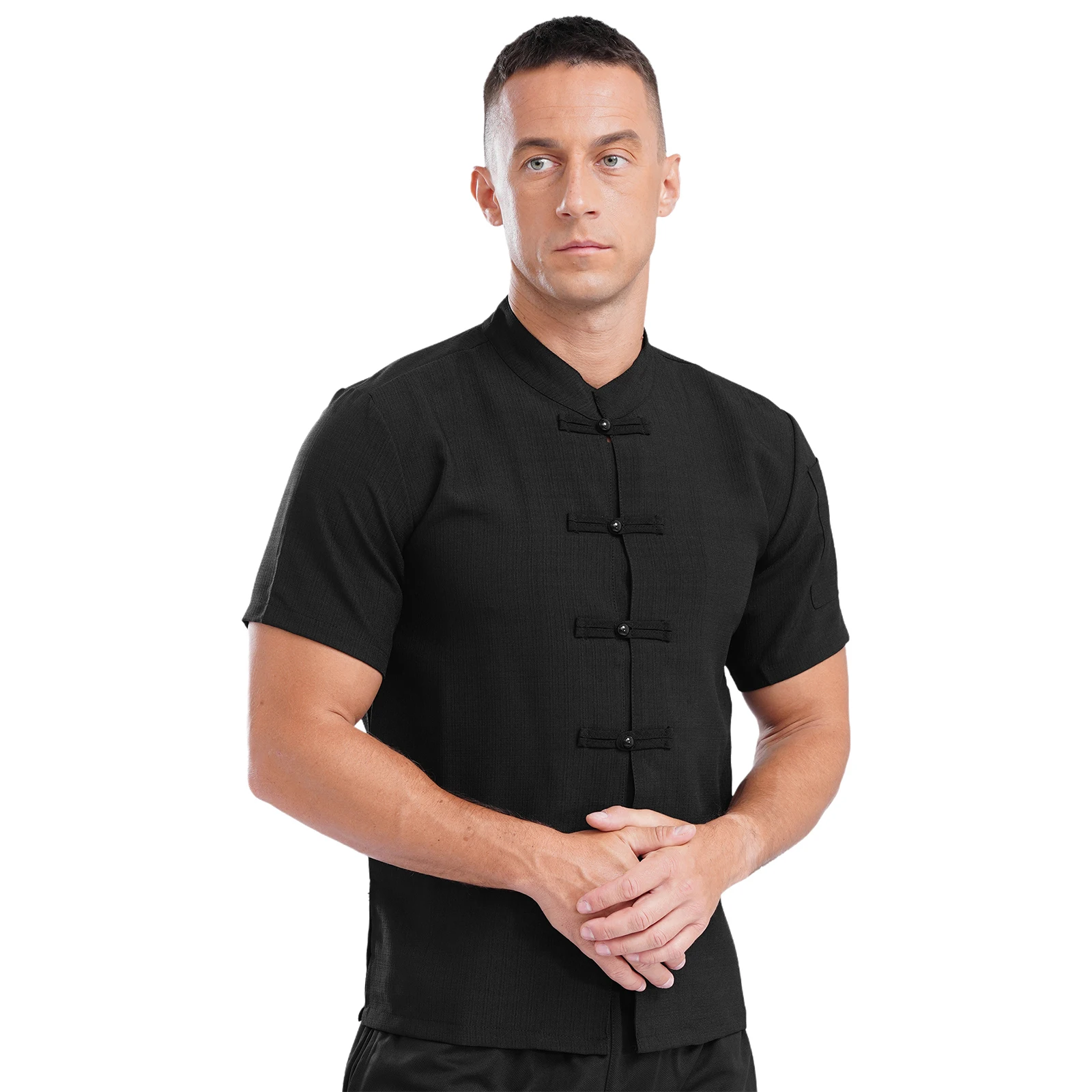 Unisex Mens Womens Cotton Linen Chef Jacket cooking Mandarin Collar Chinese Knot Button Cook Shirt Kitchen Restaurant Uniform
