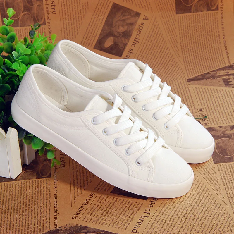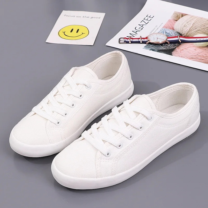 Unisex White Canvas Shoes Casual Summer Vulcanized Shoes Lace-up Students Cloth Shoe Women’s Flats Sneakers Women Board Shoes