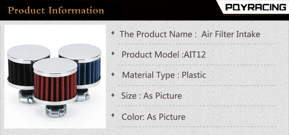 Universal 12mm Car Air Filter for Motorcycle Cold Air Intake High Flow Crankcase Vent Cover Mini Breather Filters