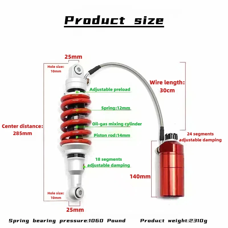 Item name: Universal 285MM Motorcycle CNC Rear Shock Absorber Damping Adjustable Rear Suspension