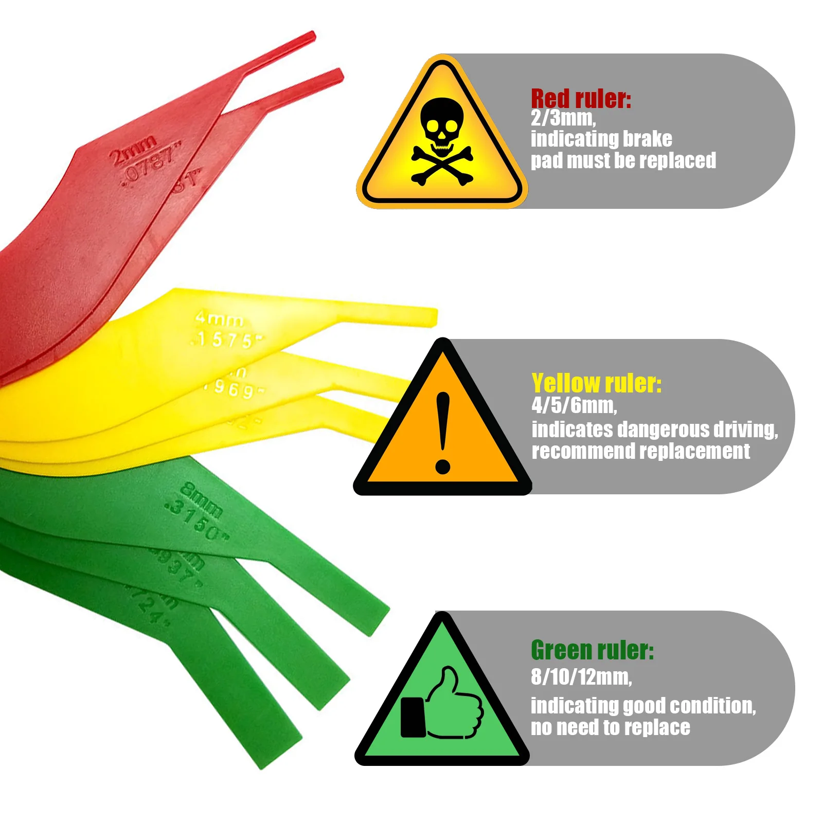 Universal Automotive Brake Pad Thickness Gauge Brake Pad Measure Ruler Test Tool Brake Diagnostic Tool Tester Car Accessories