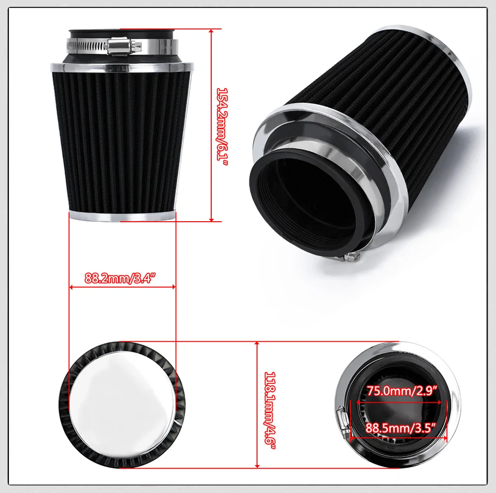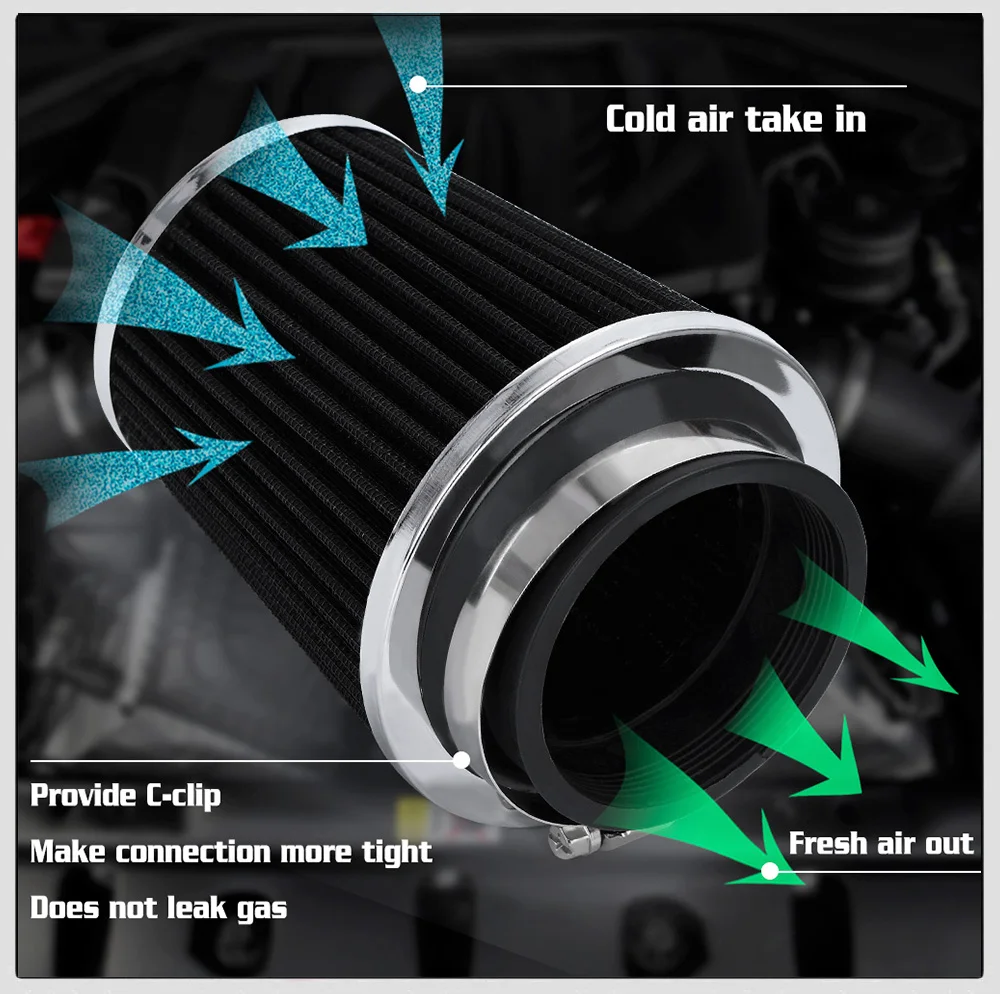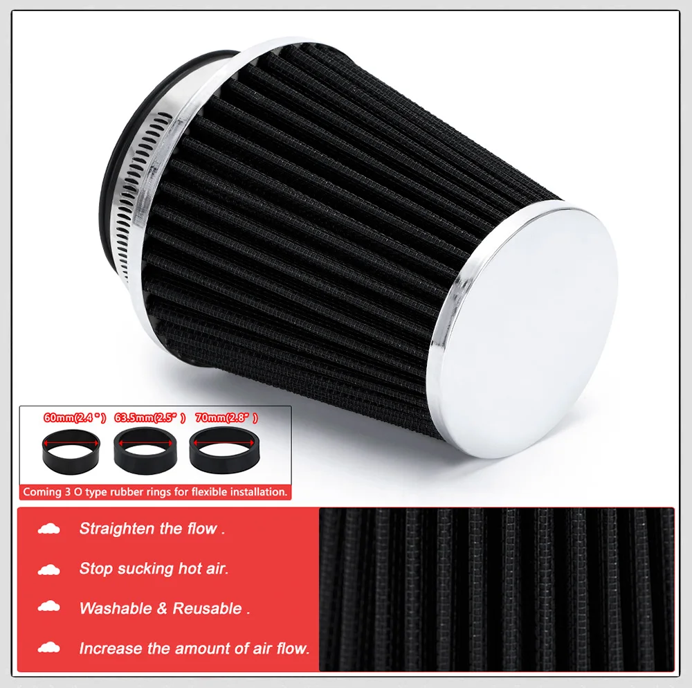 For Neck Size 76mm(3”) /70mm(2.8”) /63.5mm(2.5”) / 60mm(2.4”) Air Inlet System.
