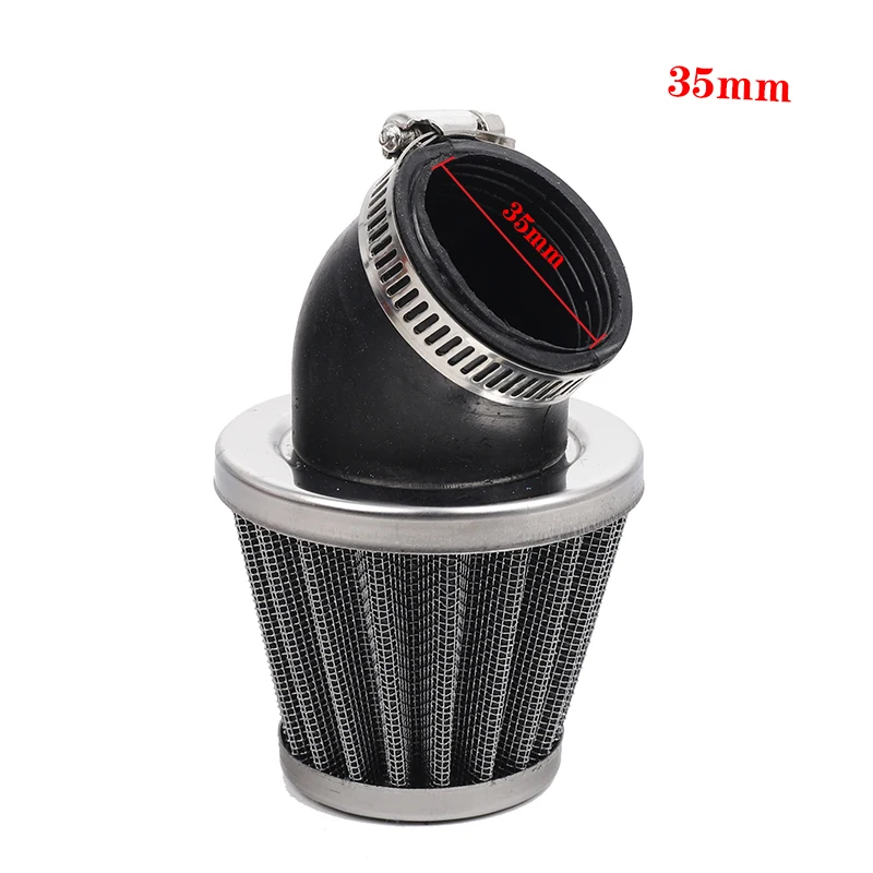– High Flow Air Filter With 45 Degree Angled Neck And Removable Splash Proof Cover For Pit Bikes, Scooters, Motorcycles And Quads.