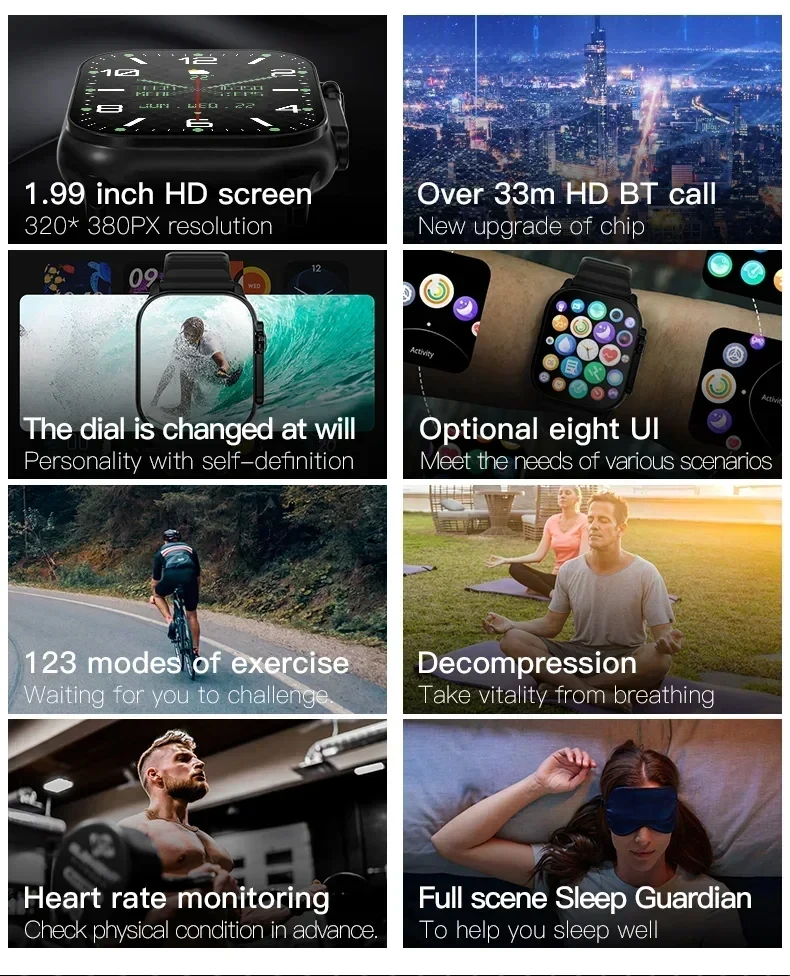 Upgrad T10 Ultra Smart Watch Men 49mm Series 8 2.09″AMOLED Screen NFC Compass Waterproof For Apple Watch IWO Ultra 8 Smartwatch