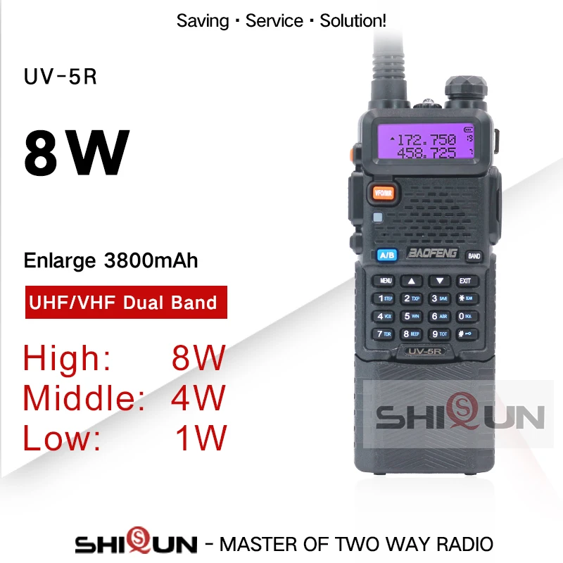 Upgrade 8W Baofeng UV-5R Walkie Talkie 3800mAh Battery Dual Display Dual Band Baofeng UV5R Portable UHF VHF Two Way Radios UV 5R