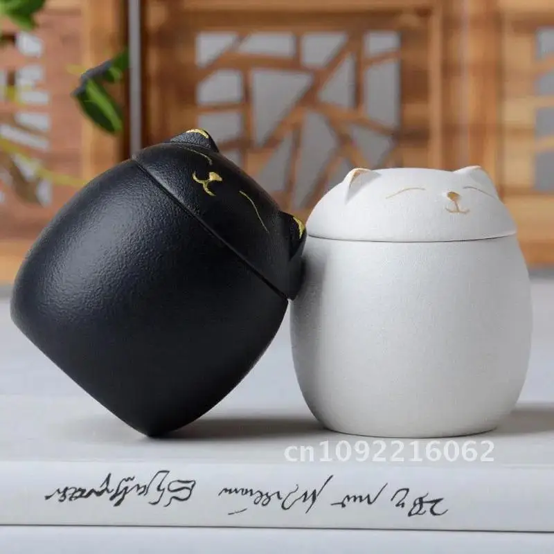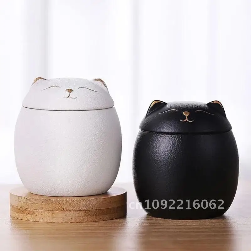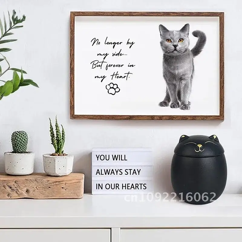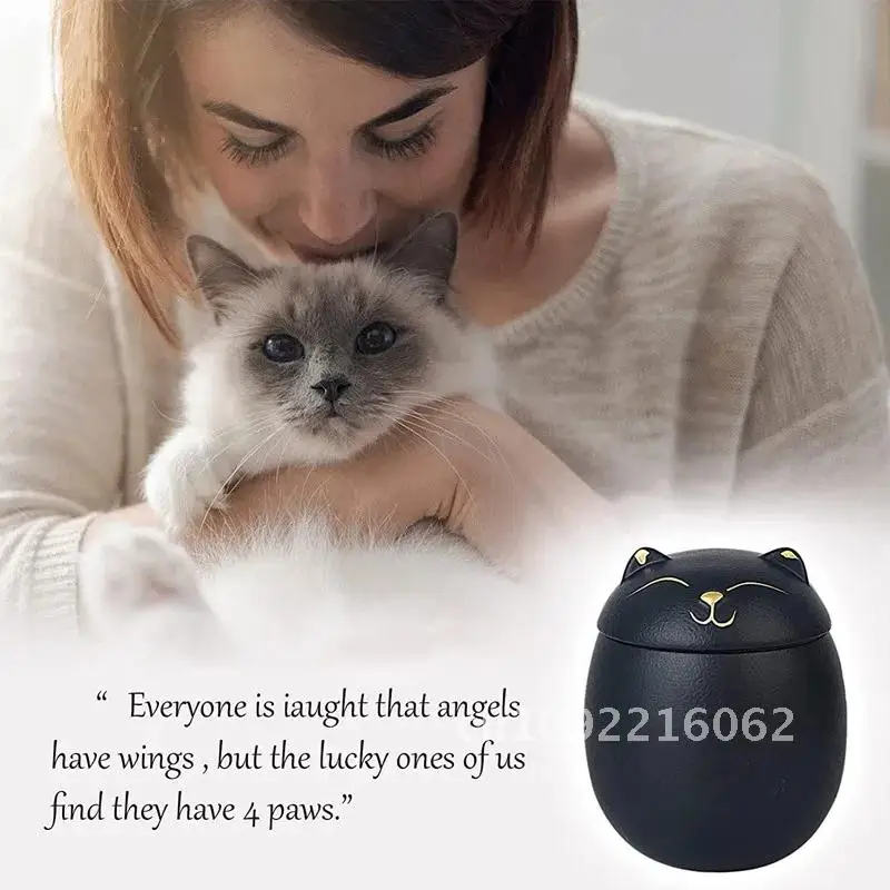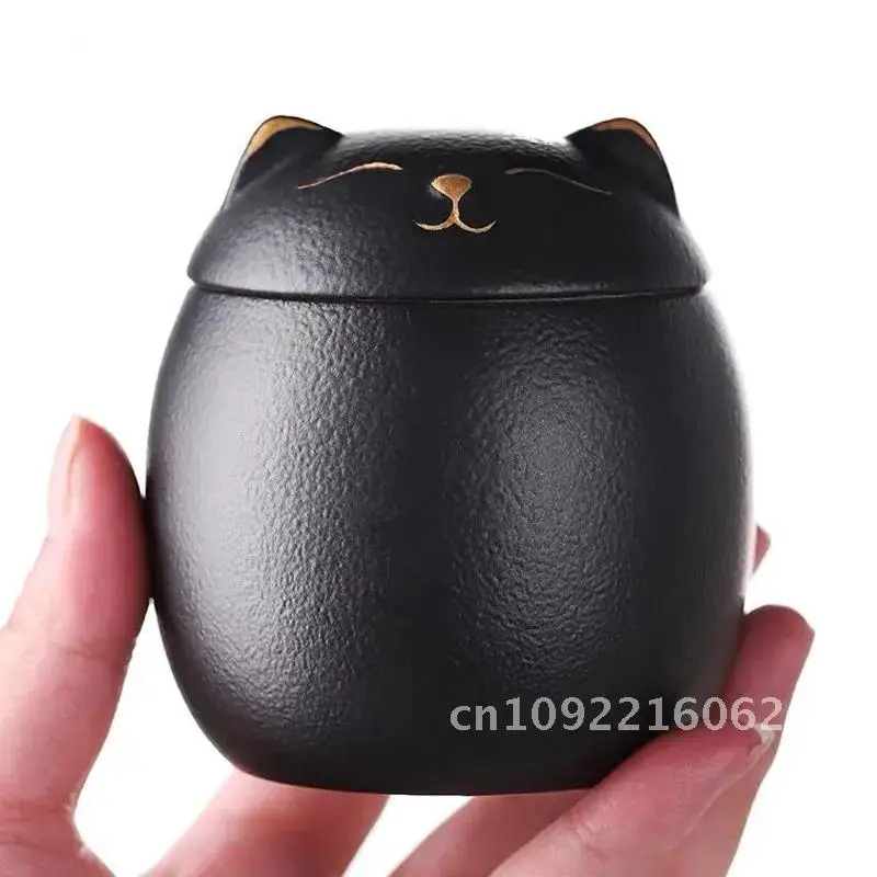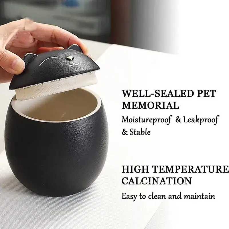 Urn for Pet Ashes, Cat Shape Memorial Cremation Urns, Jar Decorative for Funeral Black, Ceramic Handcrafted Urns Sealed Dog,