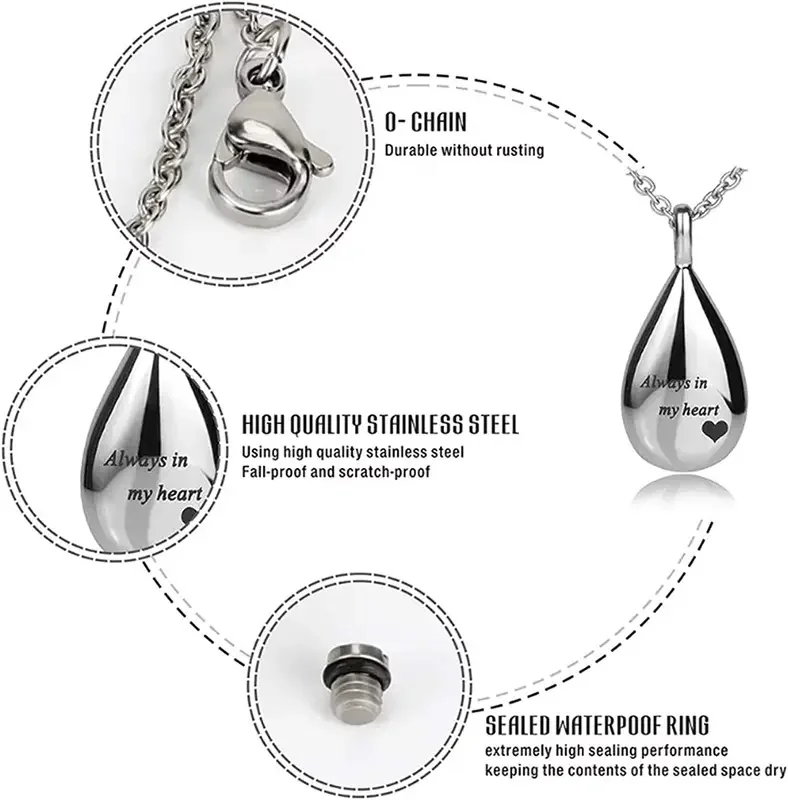 Urn Necklace Memorial Locket Urn Pets Pendant Necklace Stainless Steel Teardrop Cremation Jewelry Keepsake for Ashes for Dog Cat