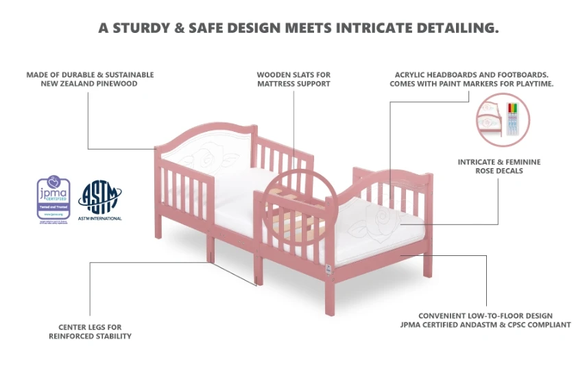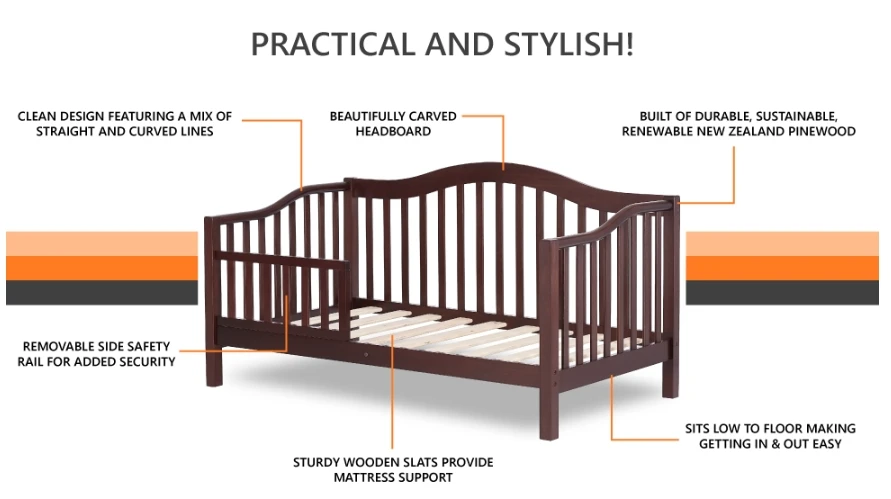 IDEAL TRANSITION BED: The Austin Toddler Day Bed features a convenient low-to-floor- design, making it easy for your child to get in and out of bed. A removable side safety guard rail prevents any accidental falls while sleeping