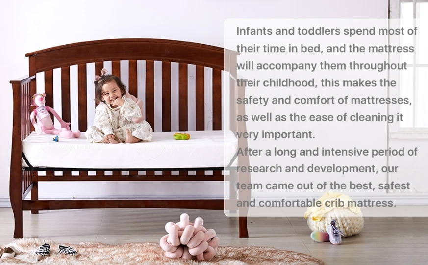 DUAL STAGE SYSTEM: Our 3rd generation dual side crib mattress is designed to be used in a different age span, infant side is constructed from a high-density foam with optimal firmness, luxurious feel for better night sleep. The slightly softer memory foam side give your precious toddler a maximum comfort. mattress fits a standard full-size crib as well as toddler bed.