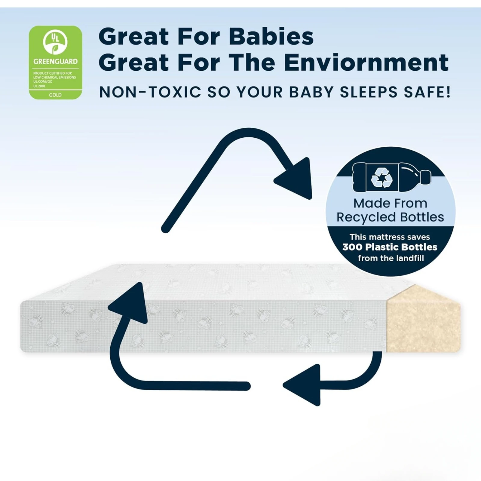 MADE FROM HEALTHY MATERIALS: Premium sustainably sourced firm fiber core made from upcycled plastic bottles for a healthier, longer sleep for your newborn and toddler