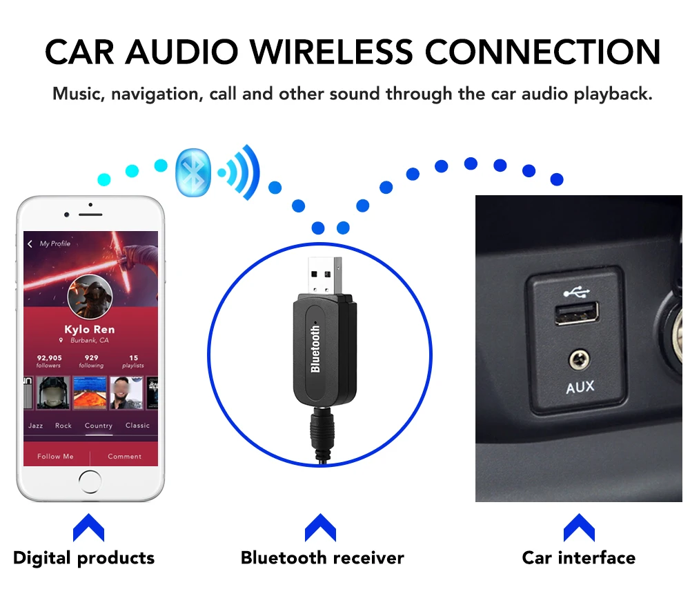 USB Bluetooth AUX Wireless Car Audio Receiver for golf 7 skoda mazda 6 bmw f10 volvo ford focus 3 citroen c4 volkswagen polo