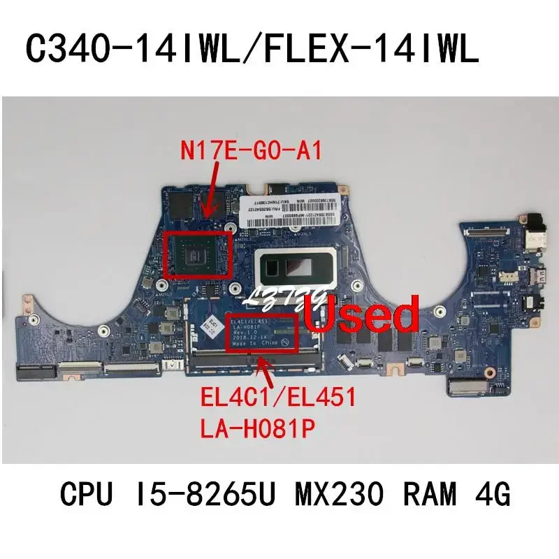 Used for Lenovo C340-14IWL/FLEX-14IWL Laptop Motherboard With CPU I5-8265U GPU:N17E-G0-A1 MX230 RAM 4G FRU 5B20S42122