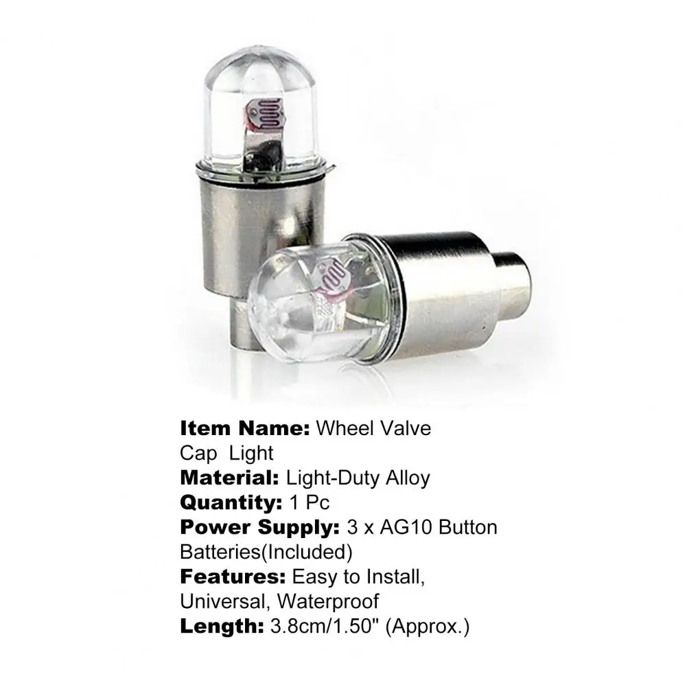 The wheel valve cap light with 3pcs AG10 button cells is no need to connect to your car’s electrical circuit.