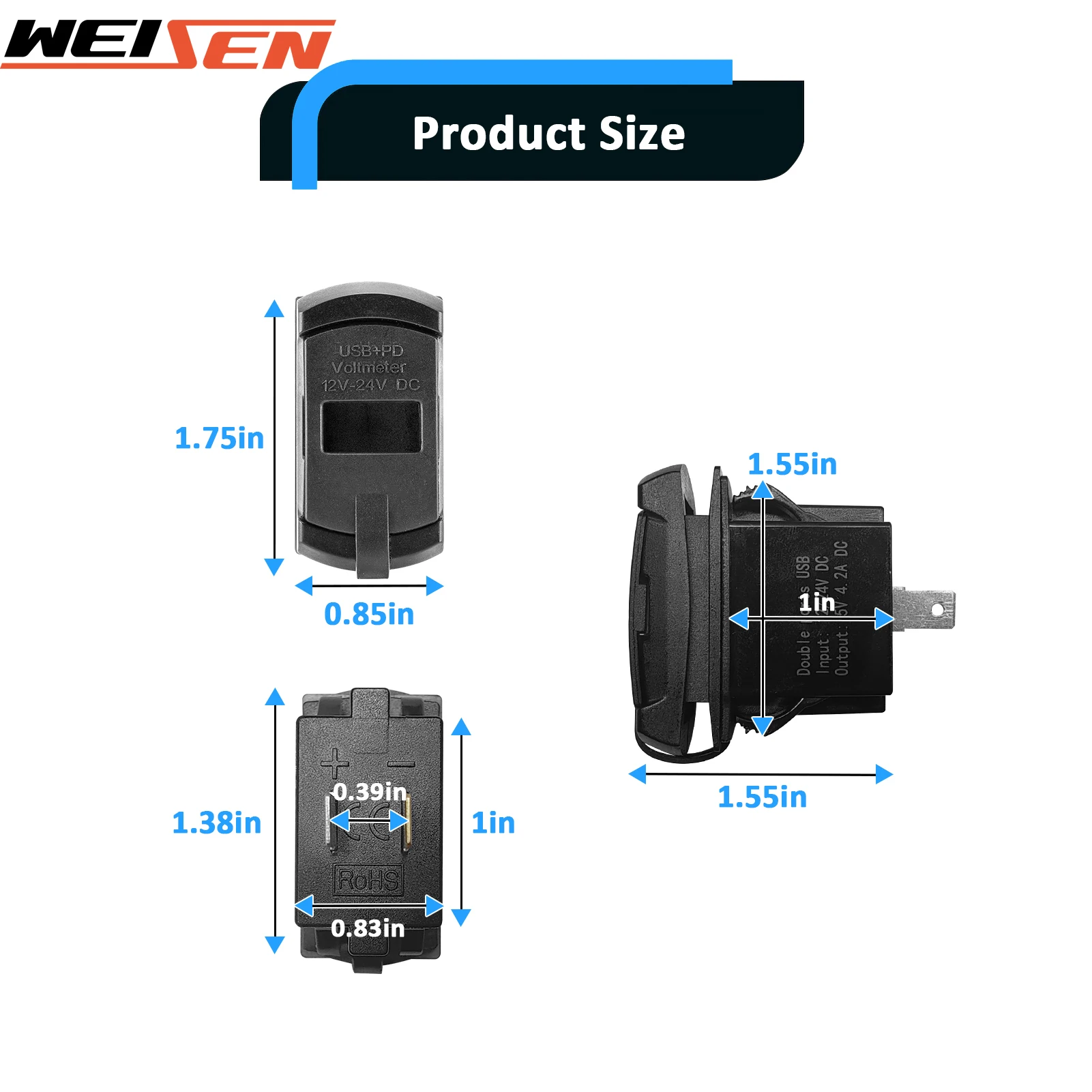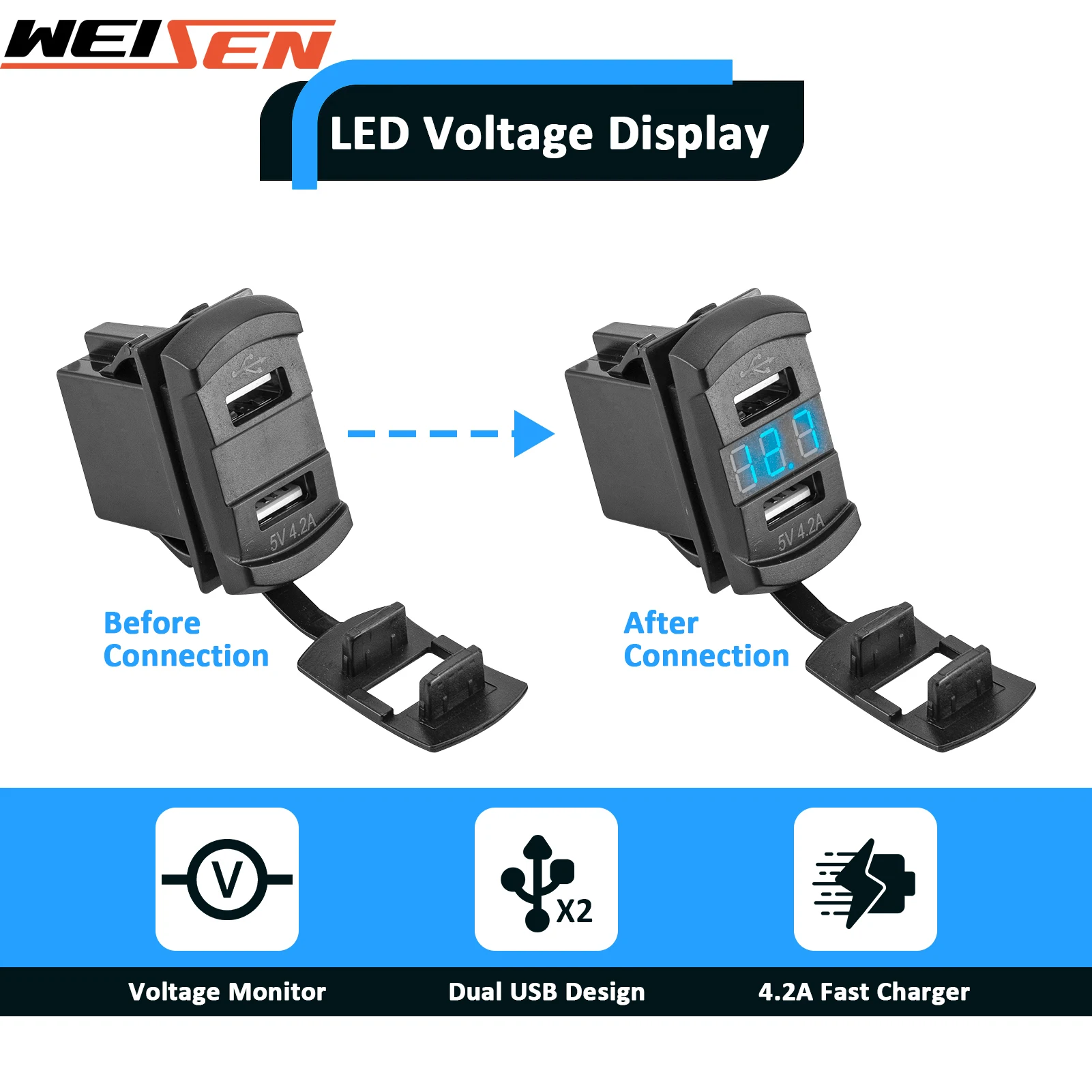 This USB dual charger is designed with safety in mind, with built-in short circuit, overheating, and overcharge protection to ensure your devices are always safe while charging. With an LED voltmeter display, You can monitor voltage status in real-time.The USB charger also utilizes smart IC technology to prevent problems caused by incorrect wiring.