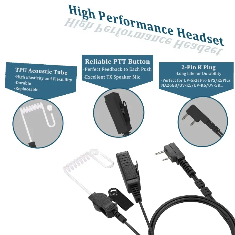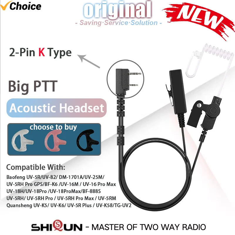 UV-5R Acoustic Headset 2-Pin K-Type Headphone Big PTT For Baofeng DM-1701A Quansheng Walkie Talkie UV-K6 UV-K58 Radio’s Earphone