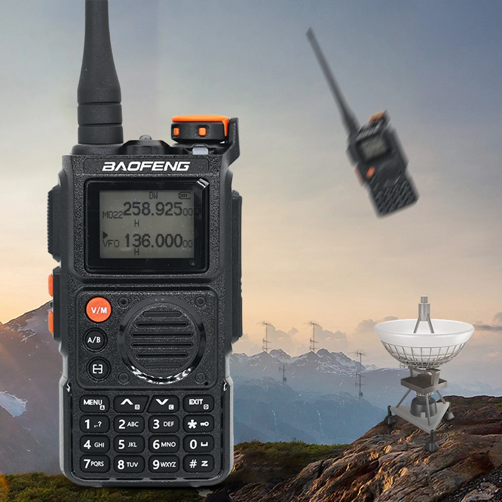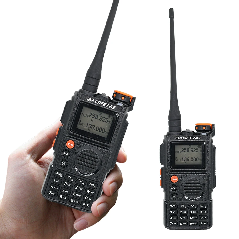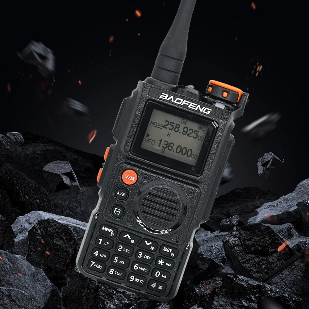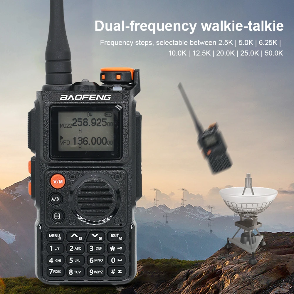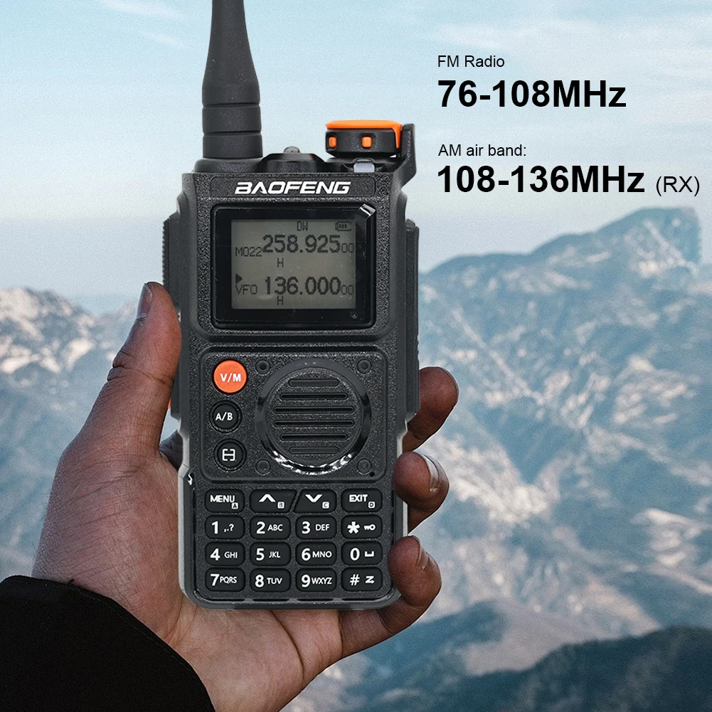 Feature: 1. Comprehensive Frequency Range: The Air Band Walkie Talkie covers 6 frequency bands: FM 65-108 MHz (RX only), AM 108-136 MHz (airband RX), 350-390 MHz (RX only), 136-174 MHz (TX/RX), 220-260 MHz (TX/RX), and 400-520 MHz (TX/RX), ensuring versatile communication options. 2. Wireless Frequency Cloning: With the UHF VHF DTMF NOAA Long Range Ham Radio, easily copy frequencies wirelessly. Just press to enter the “search” interface, find another radio’s frequency and privacy code, and save it. This simplifies communication without manual frequency input. 3. Convenient Type-C Charging: The Dual-Band Two-Way Radio features Type-C USB charging, allowing easy power-ups using a power bank or laptop, just like your phone. This portable and convenient charging option is ideal for on-the-go use. 4. Built-in LED Flashlight: The Airband Radio includes a powerful LED spotlight, perfect for emergencies. It quickly transforms into a flashlight, providing illumination whenever needed, enhancing its utility in various situations. 5. Versatile Handie-Talkie: Designed for flexibility, the Handie-Talkie supports multiple bands and features, making it ideal for amateur radio enthusiasts and professionals alike, offering reliable communication in a compact design. Specification: