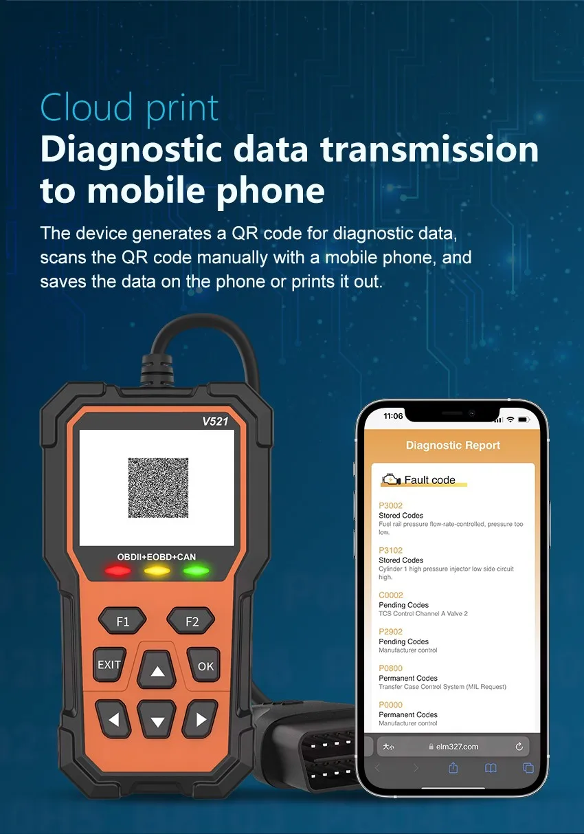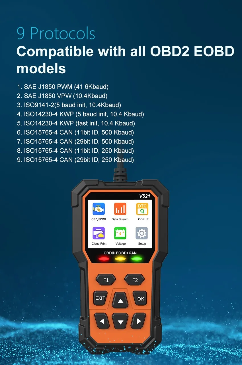 V521 OBD2 EOBD Diagnostic Scanner Tools Code Reader Clear Engine Fault Light Live Data Support Most Protocols PK V519 ELM 327