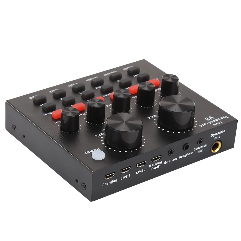 V8 USB 5.0 Audio Sound Card USB External Headset Microphone Webcast Live Broadcast Sound Card Adapter for PC Phone Computer