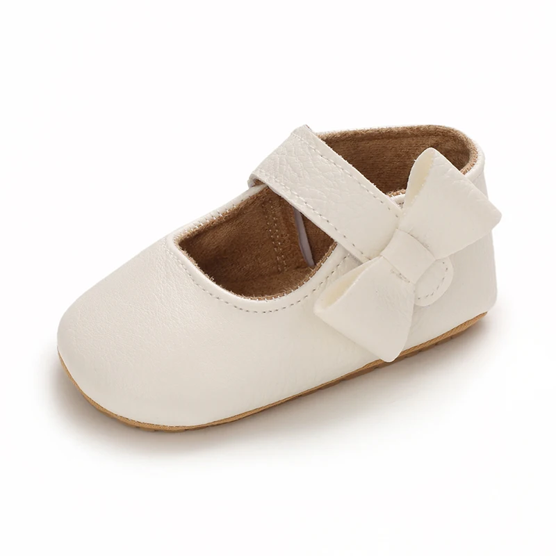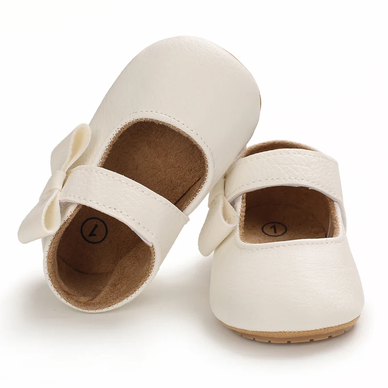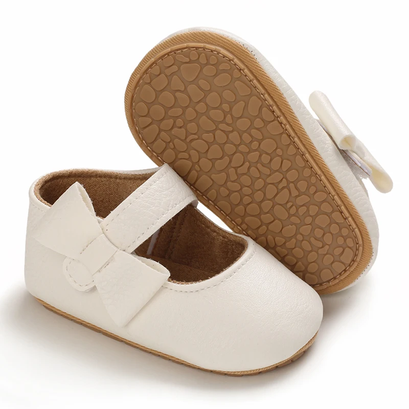 VALEN SINA Baby Casual Shoes Infant Toddler Bowknot Non-slip Rubber Soft-Sole Flat PU First Walker Newborn Bow Decor Mary Janes
