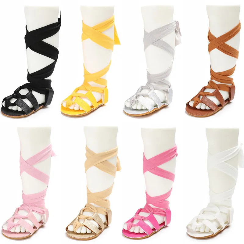 VALEN SINA Infant Girls Summer Gladiator Sandals Lace Ups Bundled High Tops Soft Rubber Sole First Walking Baby Shoes 8-Colors
