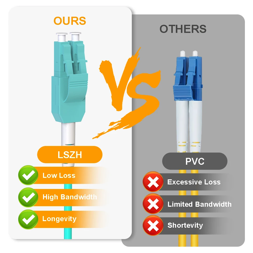 Enhance your network performance with the Vandesail OM3 LC-LC Duplex Fiber Patch Cable. Featuring OM3 multimode fiber, this cable ensures high-speed 10Gbps internet connectivity, delivering reliable data transmission for all your network needs.