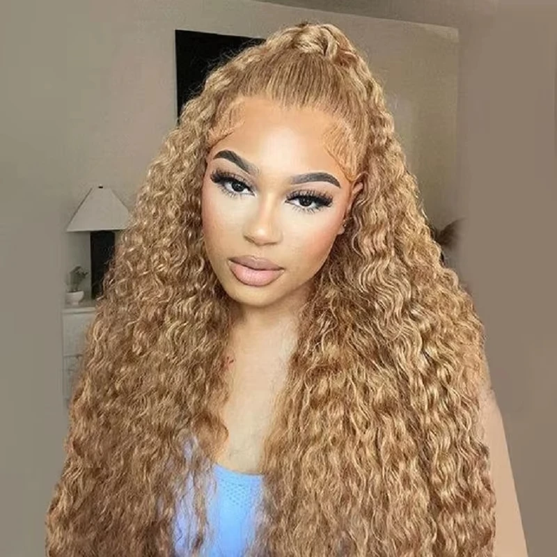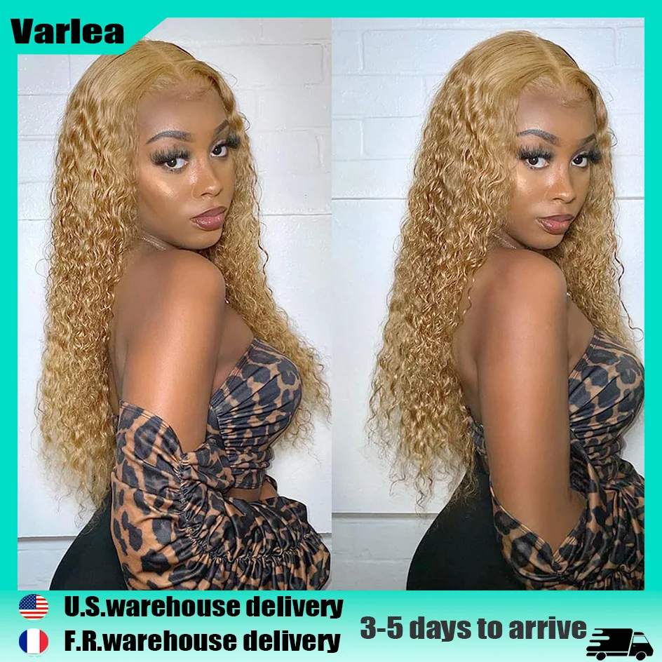 Varlea 200% Density 13×4 Lace Front Wigs Deep Wave Lace Front Wig 13×6 Curly Wigs Water Wave 27 Honey Blonde Wig Human HairKindy note