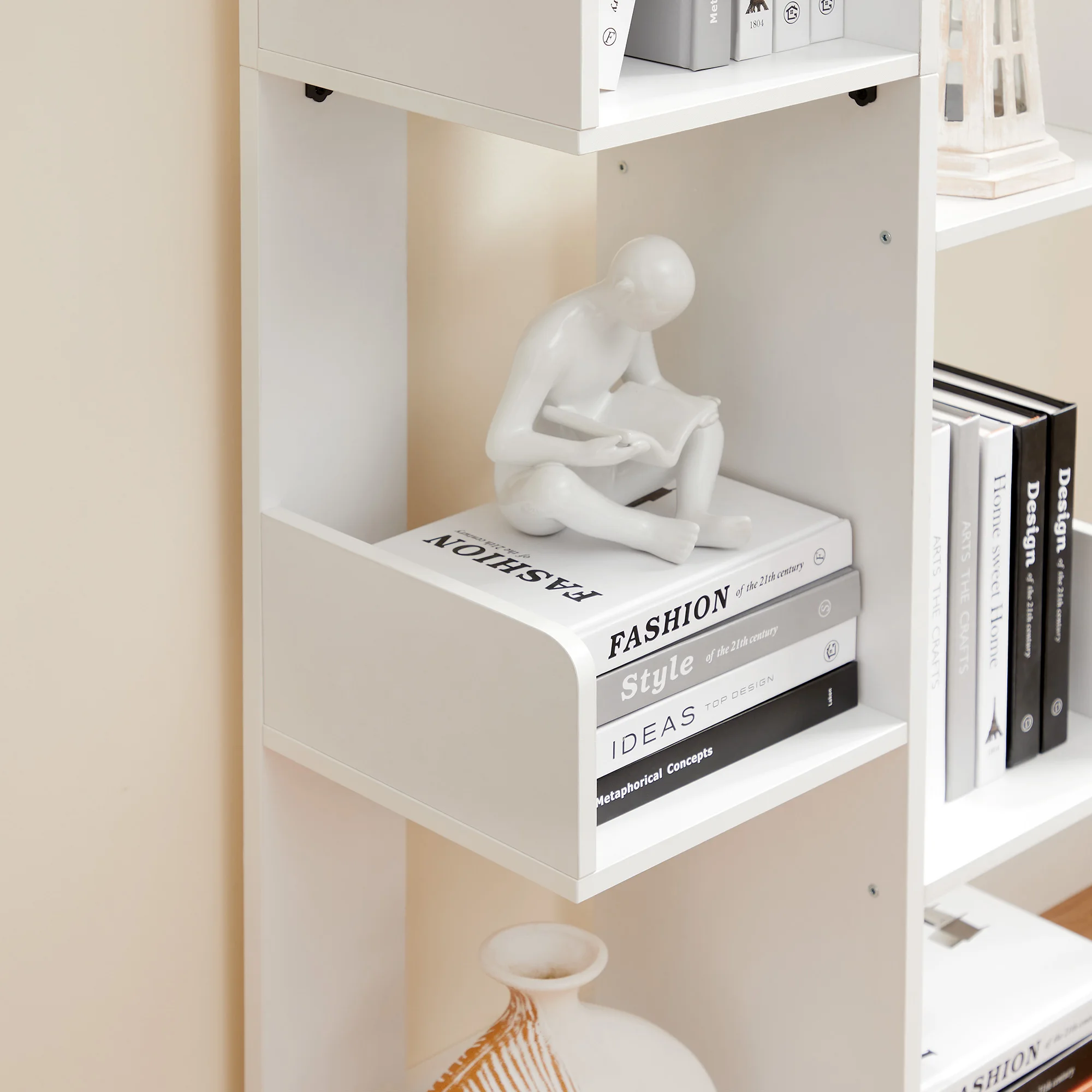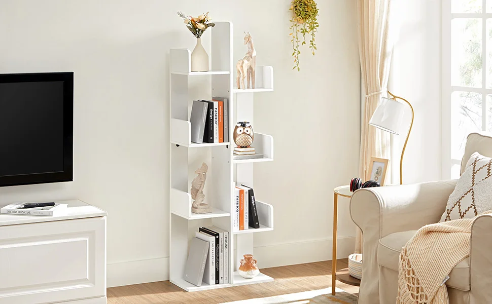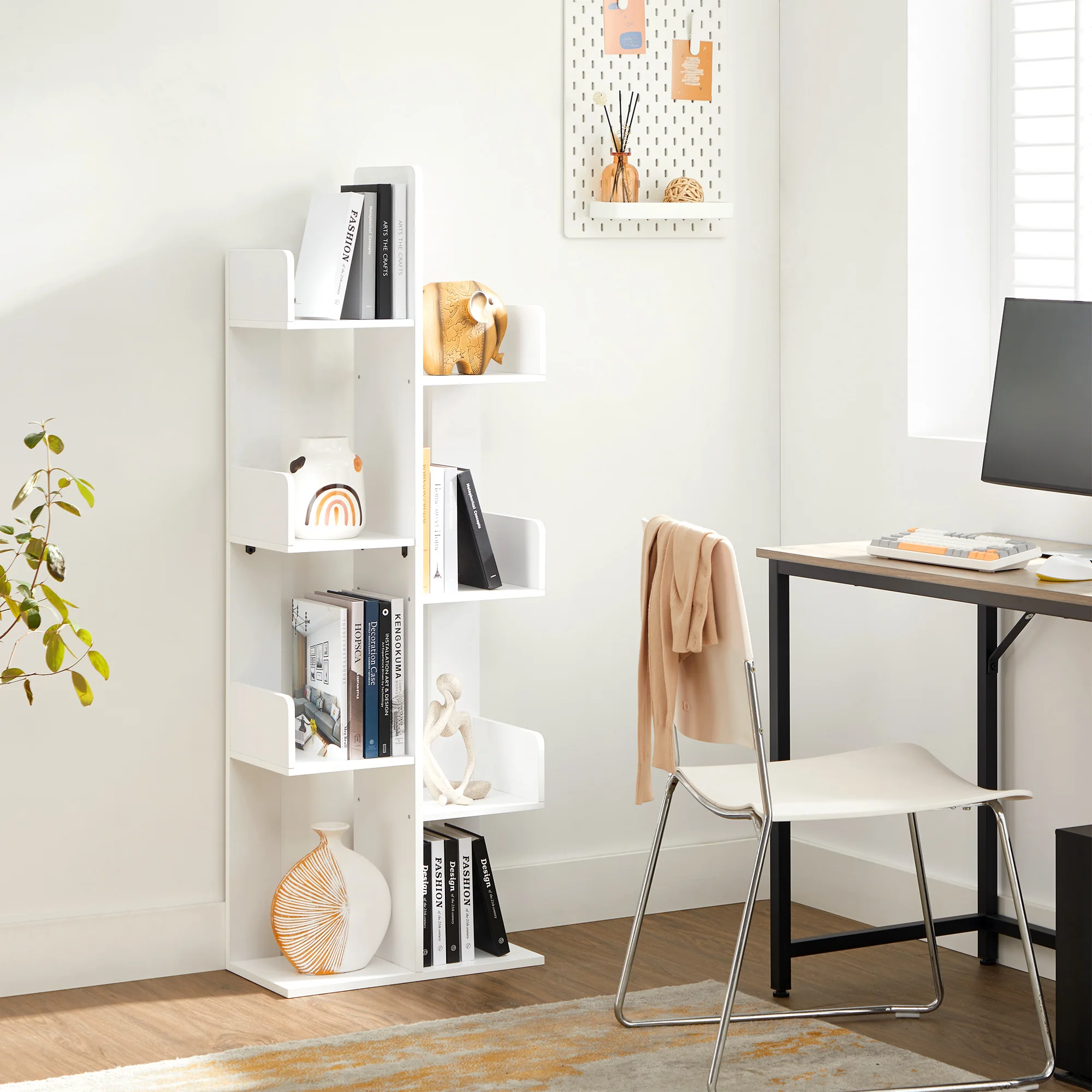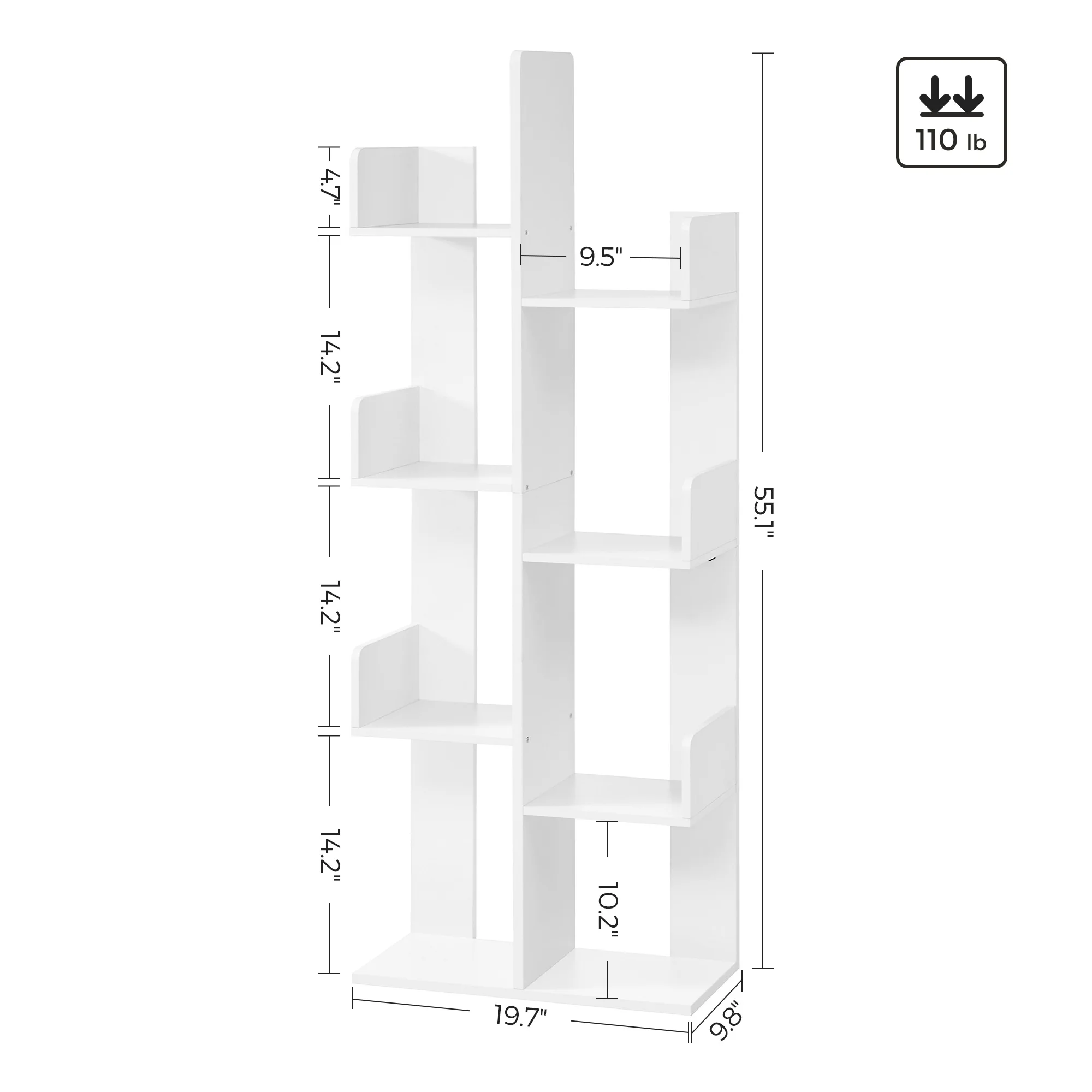VASAGLE Bookcase, Tree-Shaped Bookshelf with 8 Storage Shelves, Rounded Corners, White 9.8D x 19.7W x 55.1H in, Engineered Wood