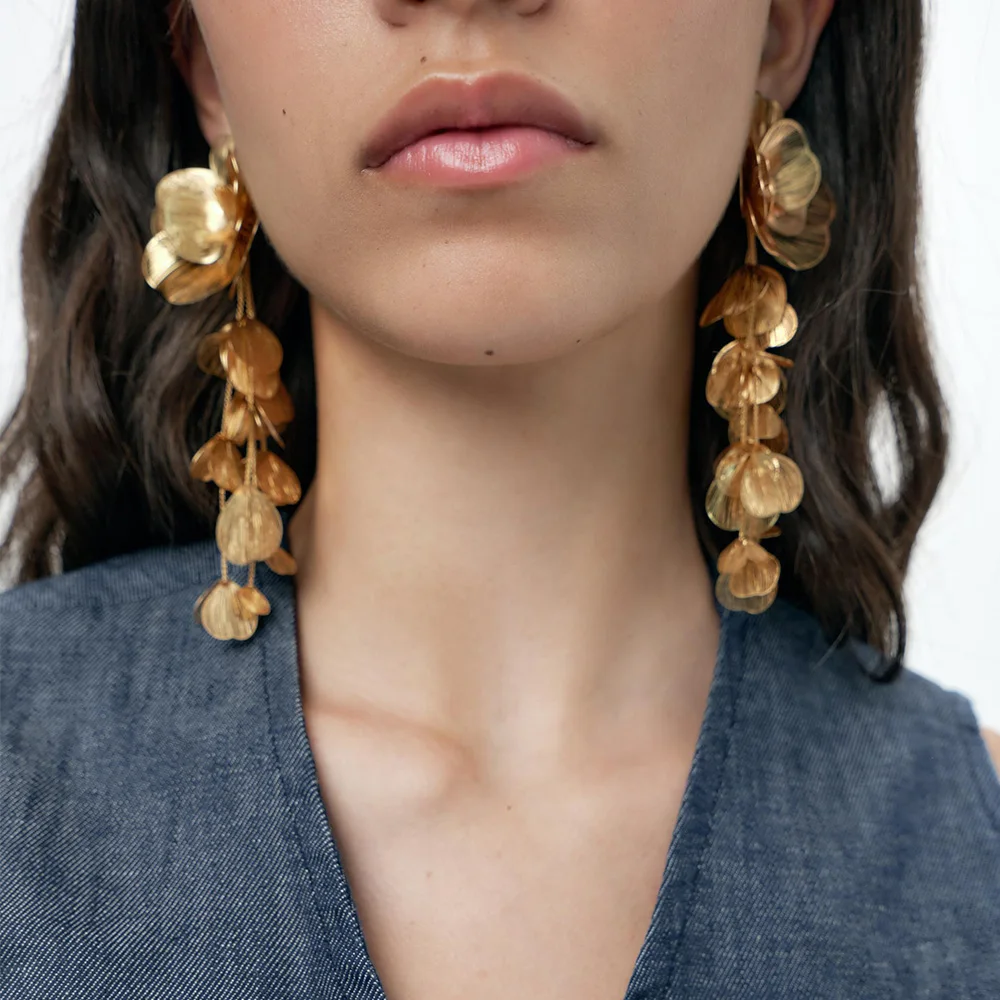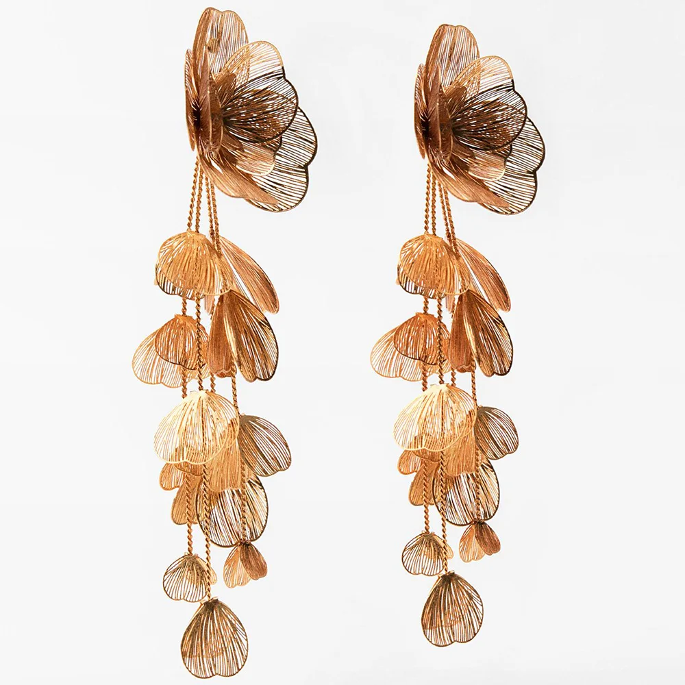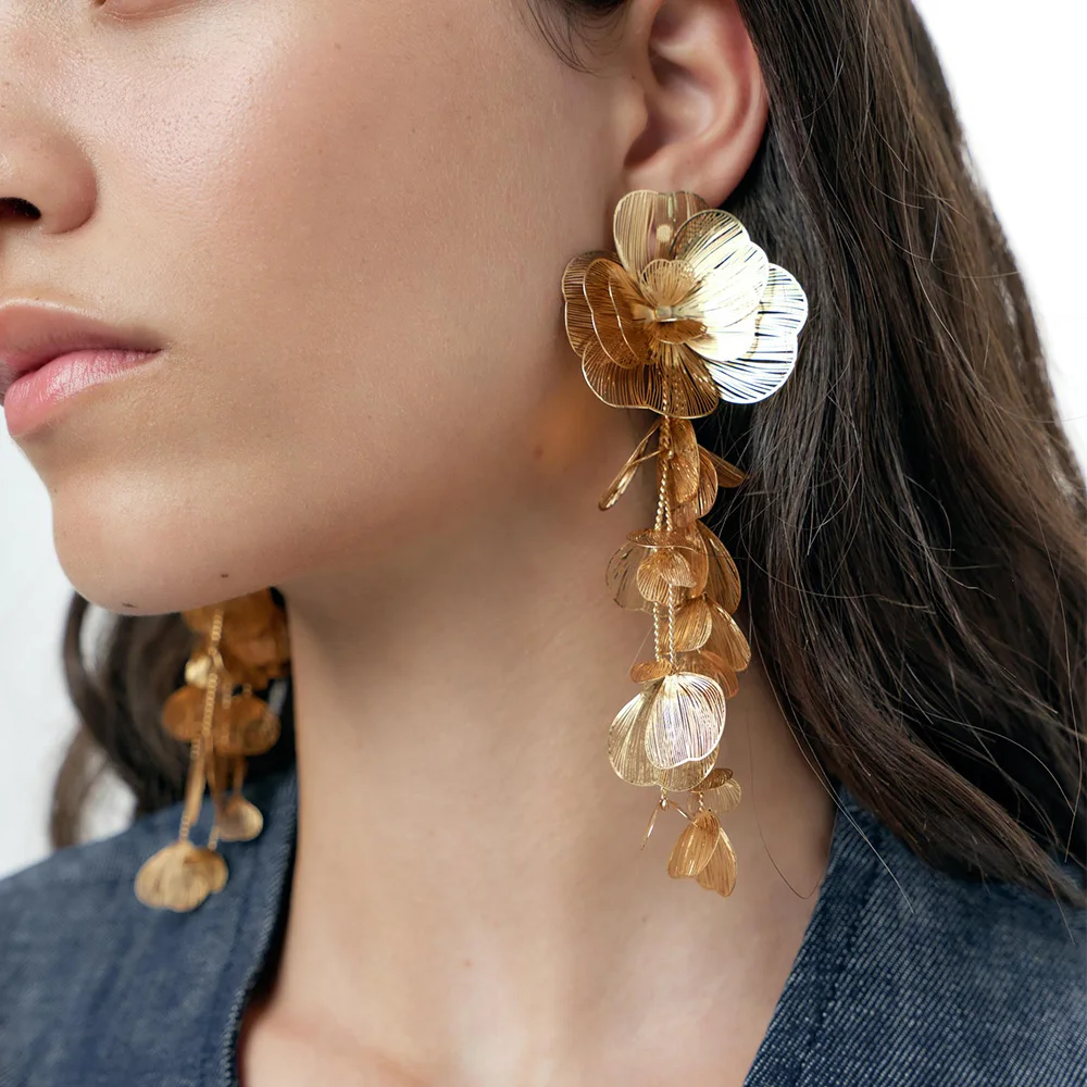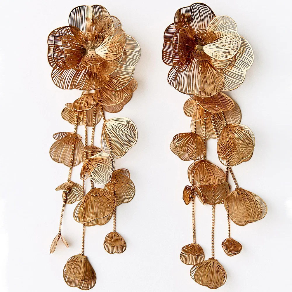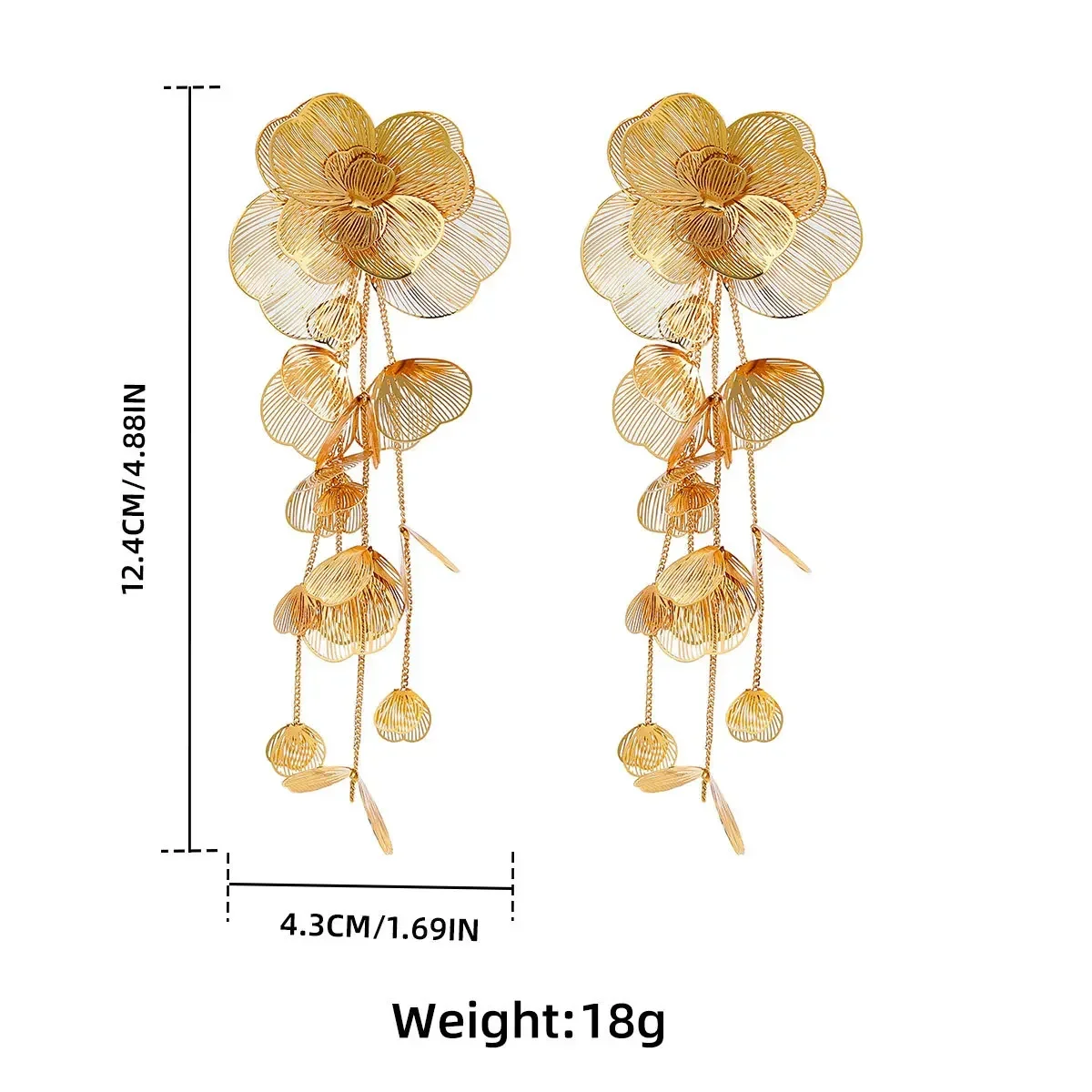 Vedawas 2024 New Multilayer Alloy Flower Tassel Earrings,Exaggerated Elegant Retro Banquet Wedding Women Accessories