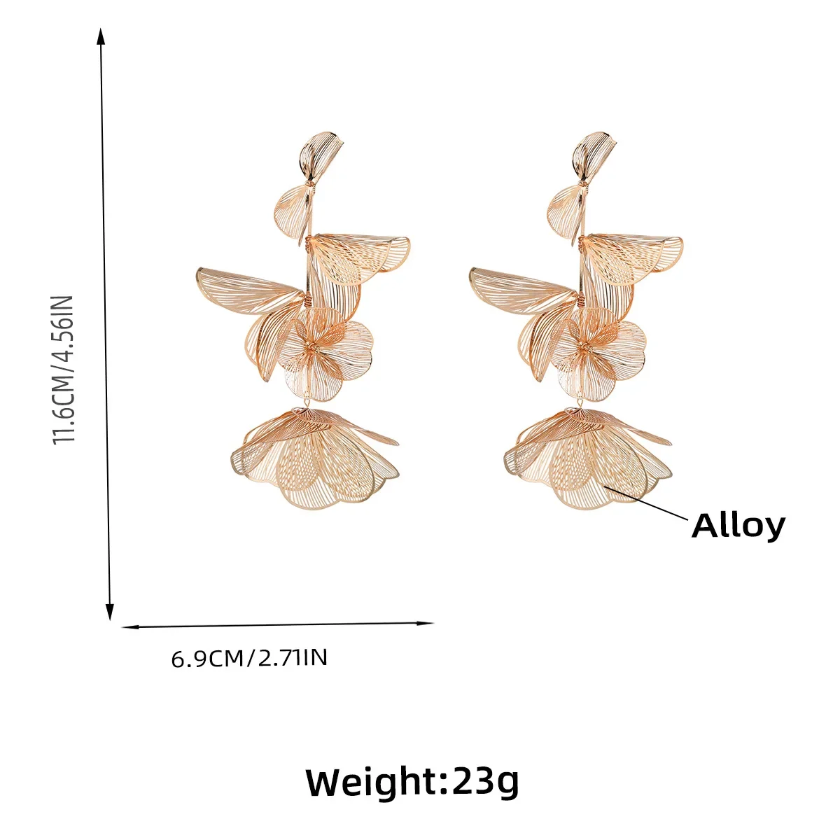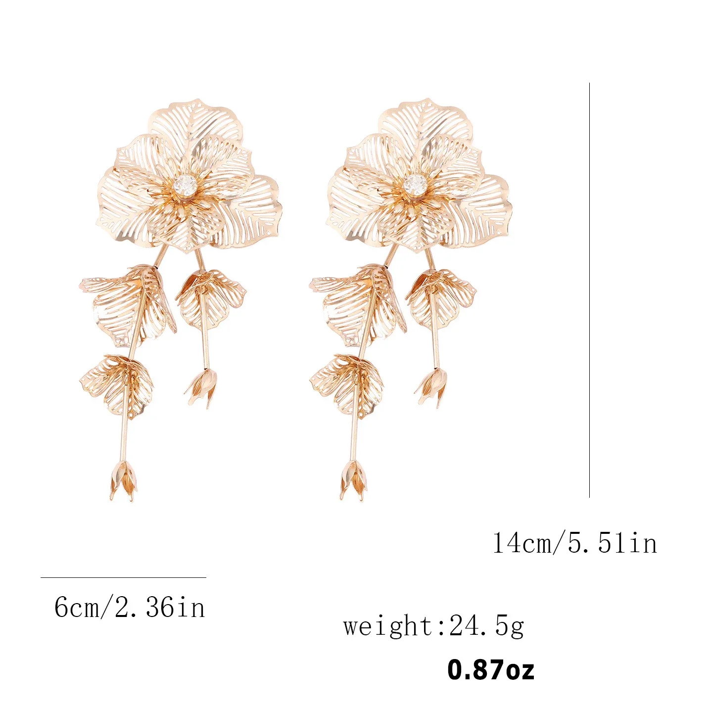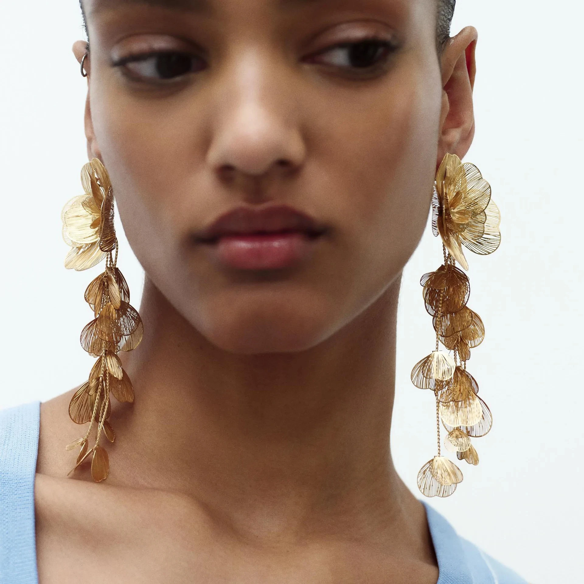 Vedawas 2024 New Multilayer Alloy Flower Tassel Earrings,Exaggerated Elegant Retro Banquet Wedding Women accessories