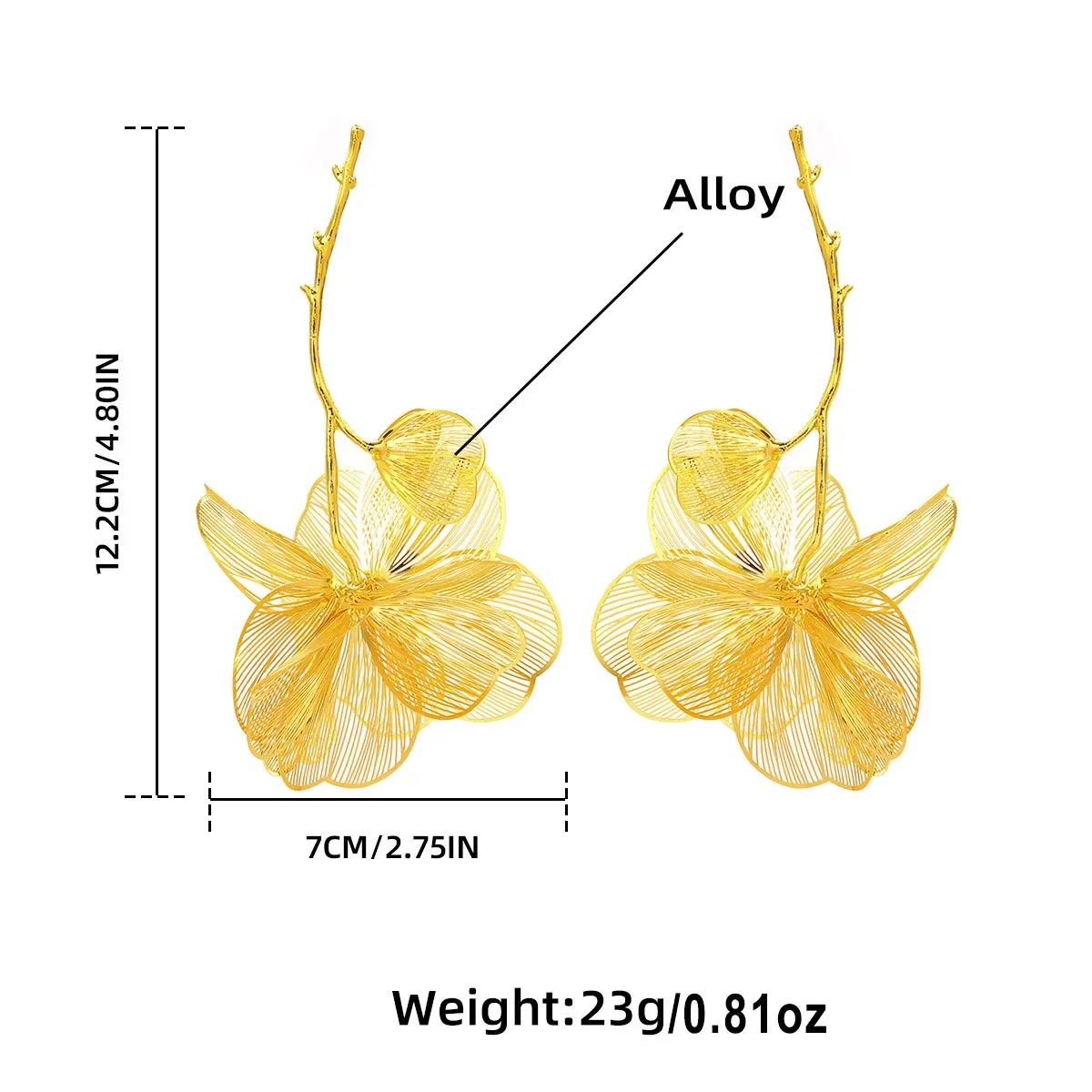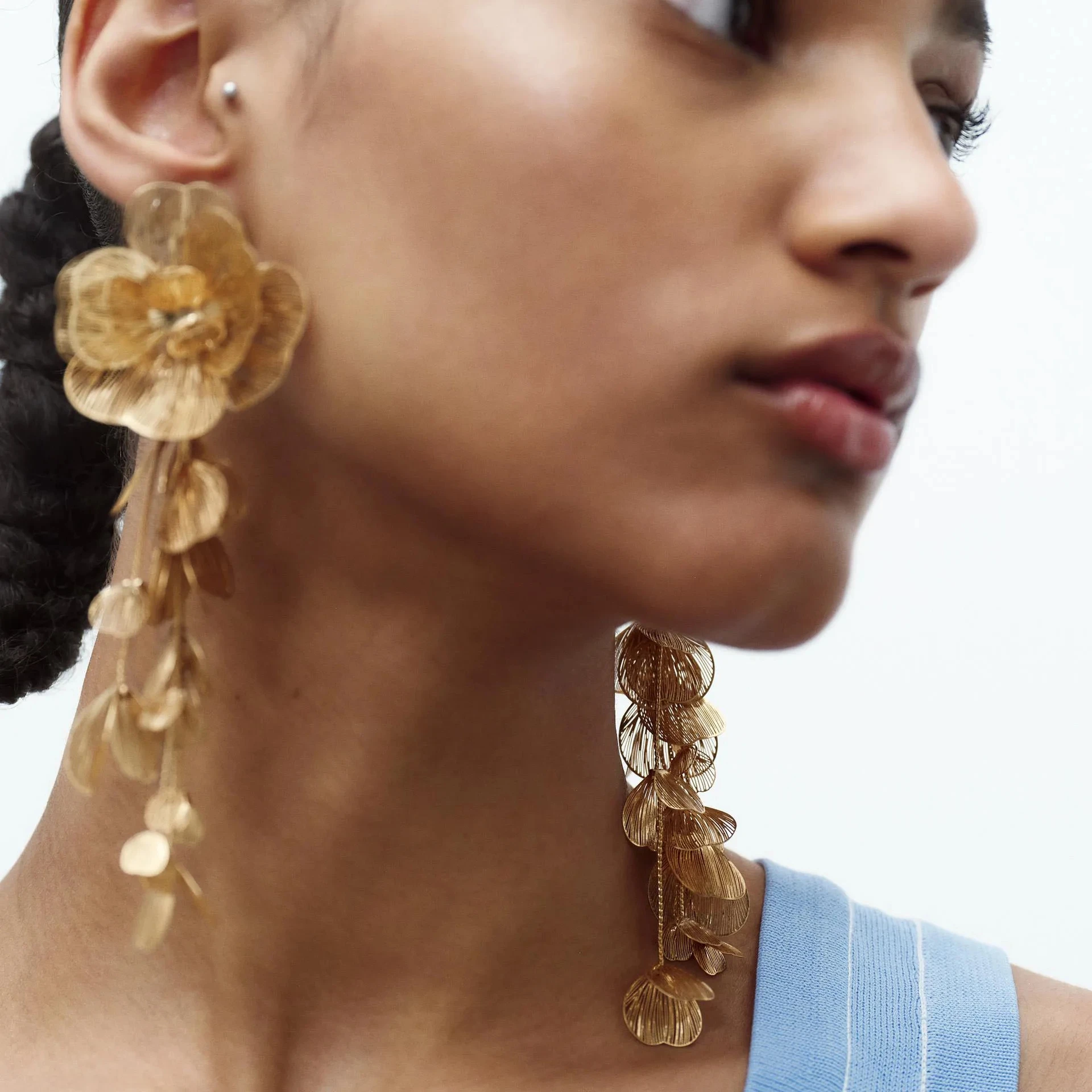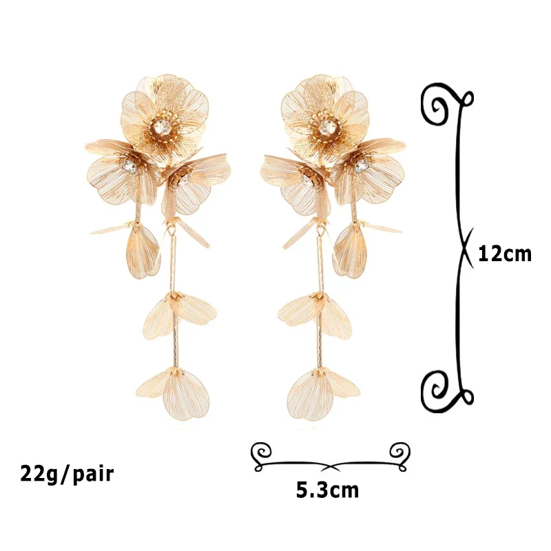 Vedawas 2024 New Multilayer Alloy Flower Tassel Earrings,Exaggerated Elegant Retro Banquet Wedding Women accessories
