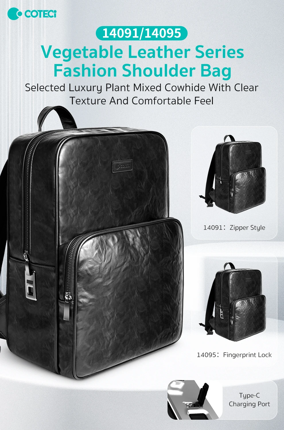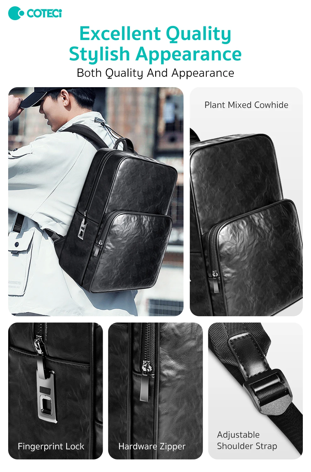 Vegetable Tanned Cowhide Series Backpack with Fingerprint Lock Men’s Backpack Business Commuter Computer Bag Fashionable Casual