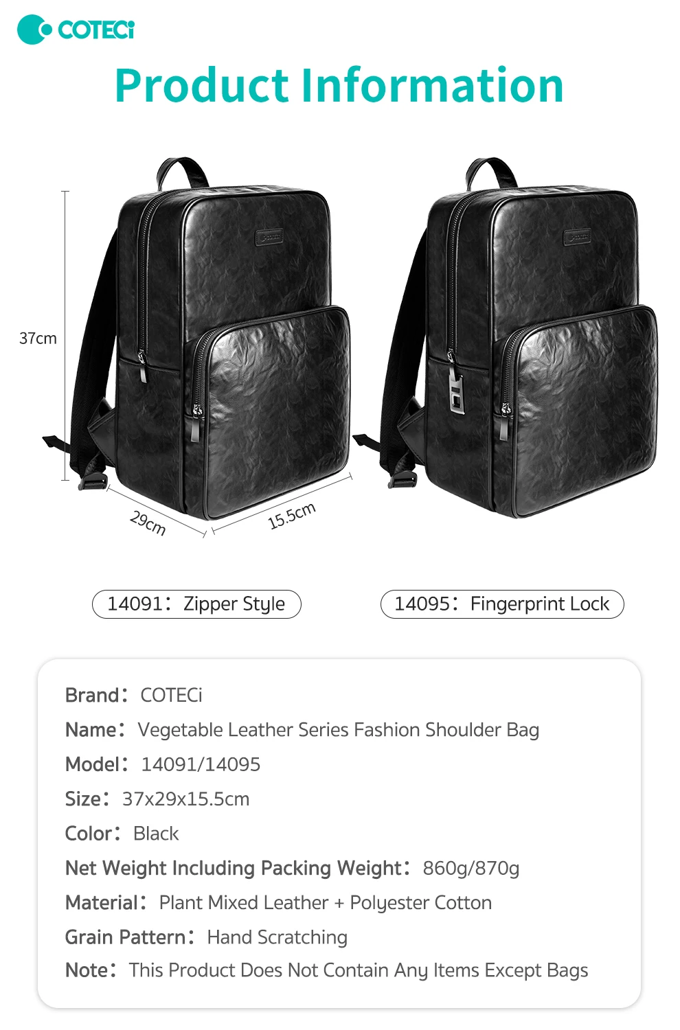 Material: Plant Mixed Leather + Polyester Cotton