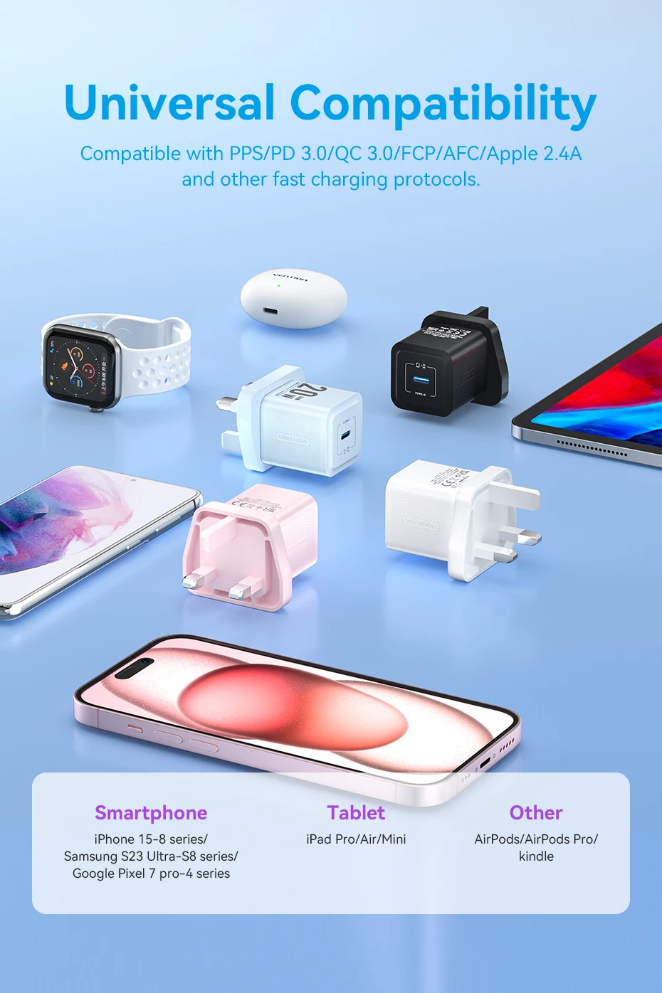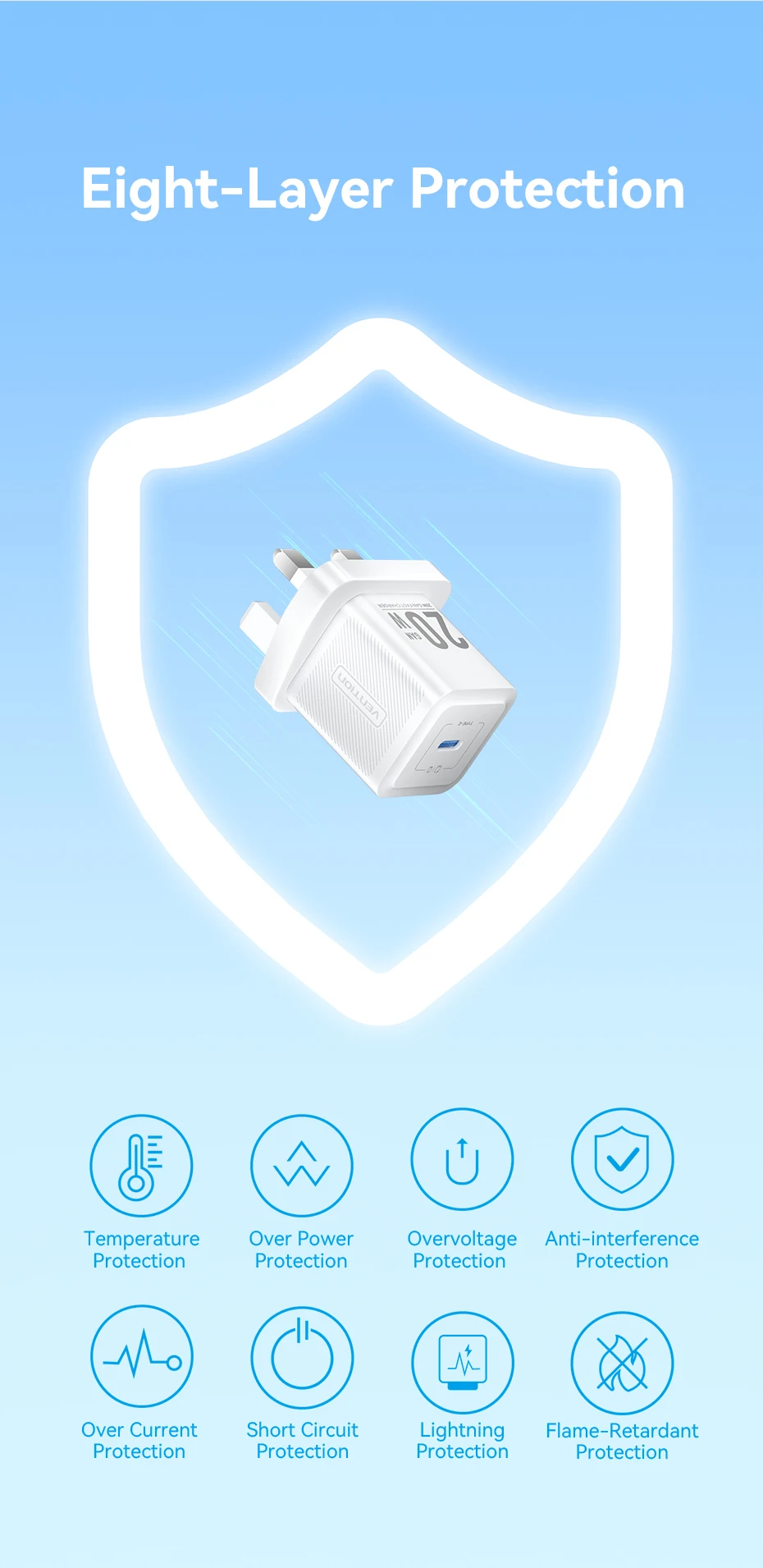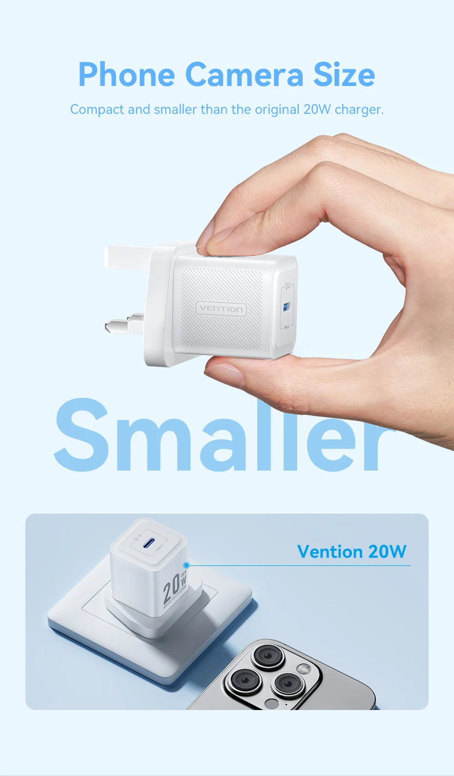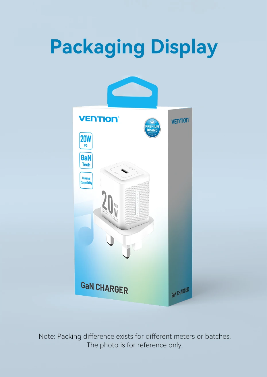 Vention UK GaN 20W Charger Fast USB Type C Charger USB C PD3.0 QC3.0 Quick Charging For iPhone 15 14 13 Mobile Phone PD Charger