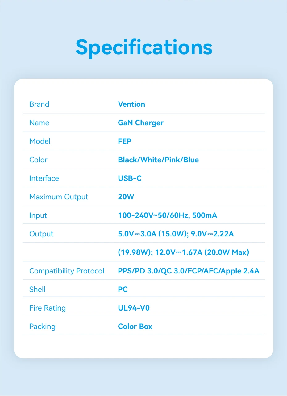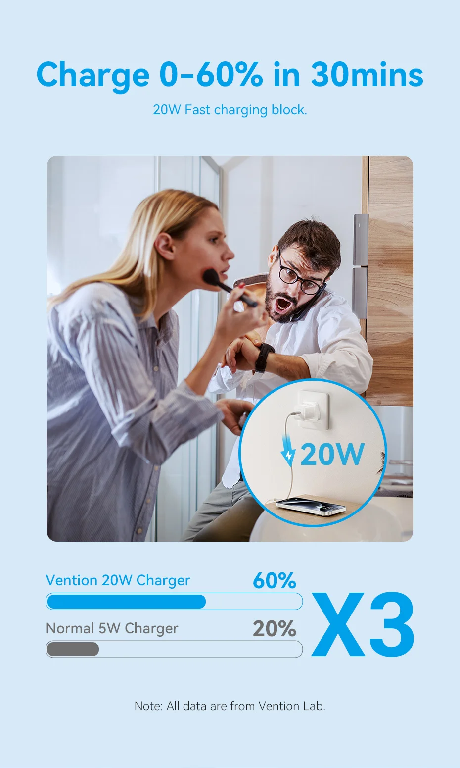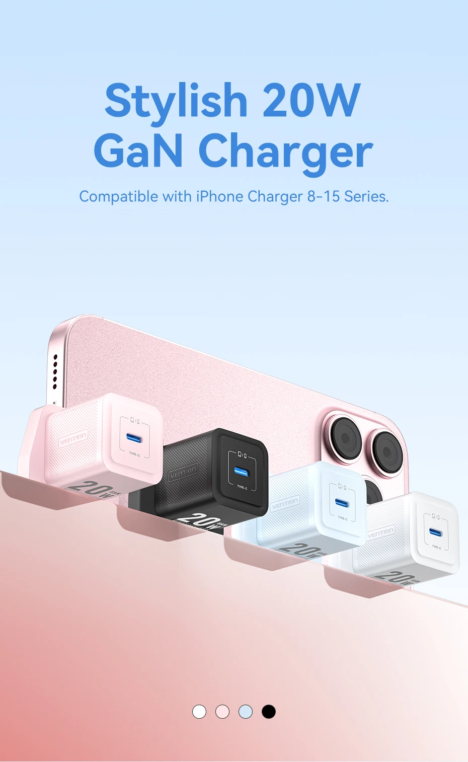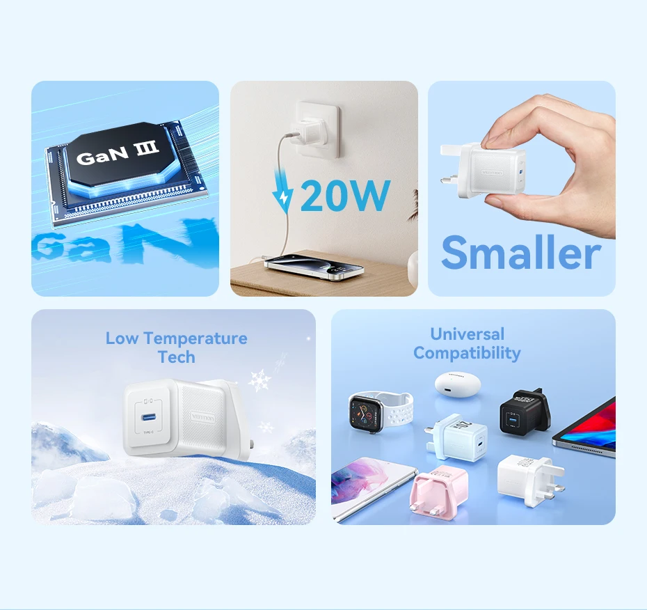 Vention UK GaN 20W Charger Fast USB Type C Charger USB C PD3.0 QC3.0 Quick Charging For iPhone 15 14 13 Mobile Phone PD Charger
