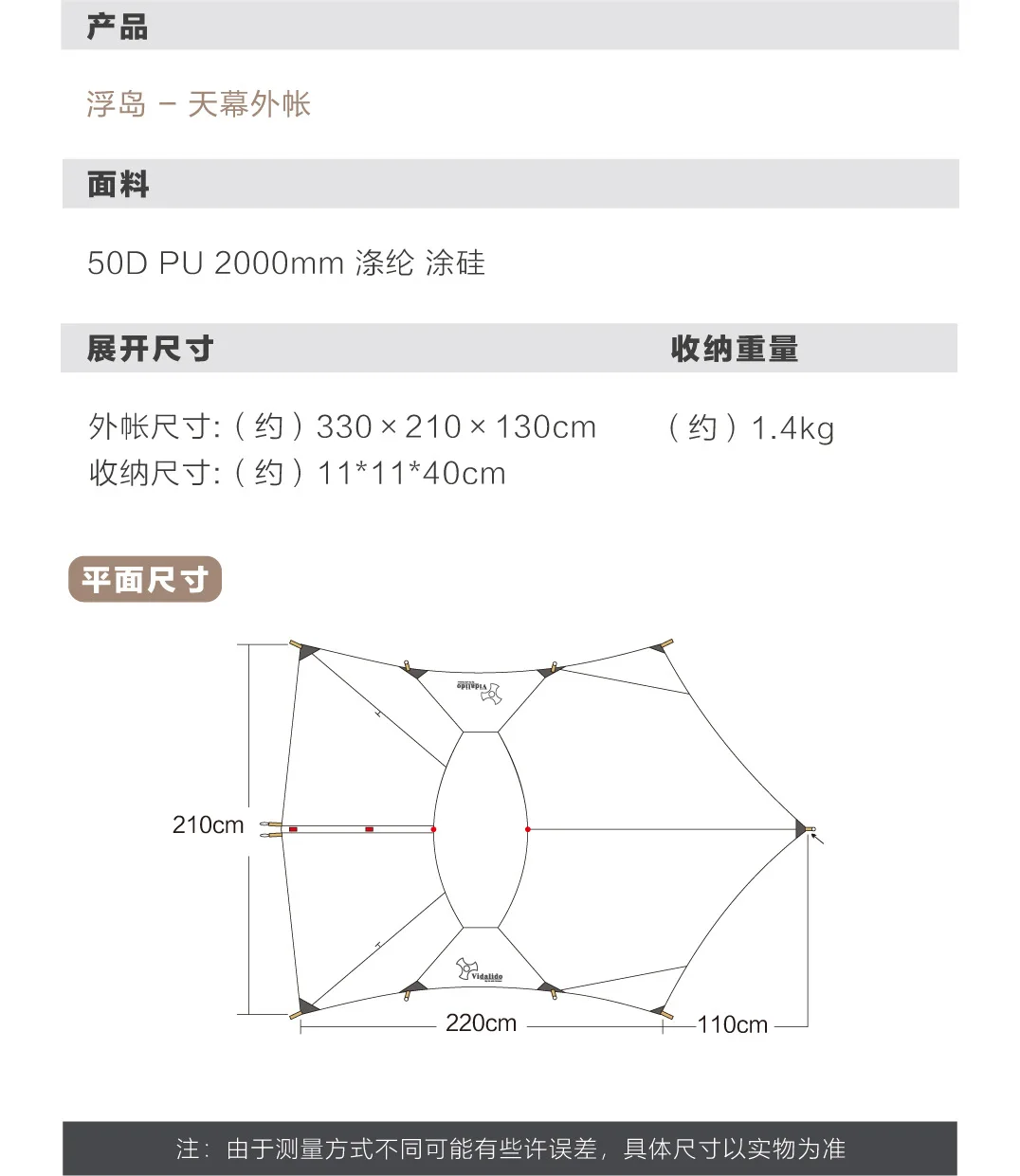 Awning size:330*210*130cm/129.9*82.6*51.1in
