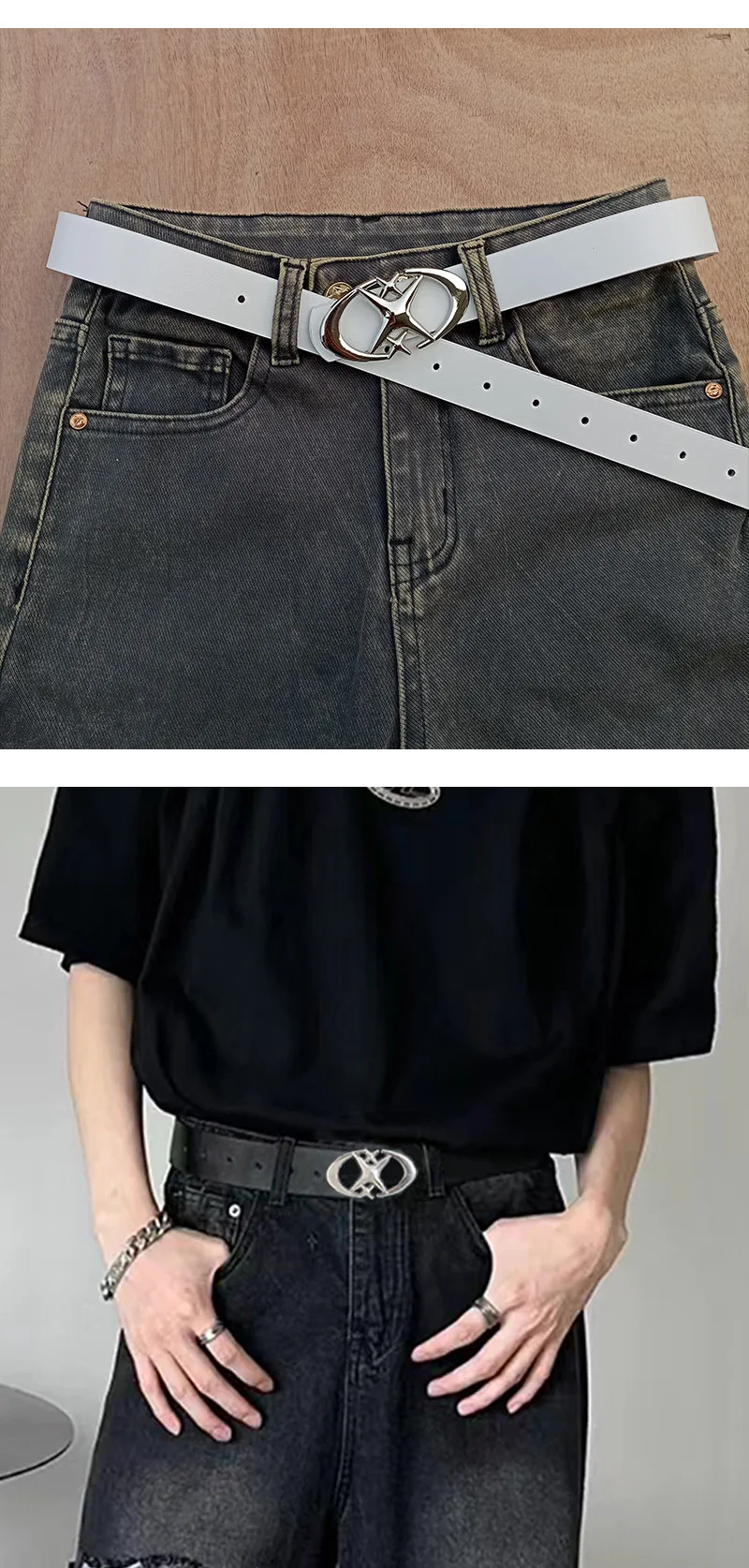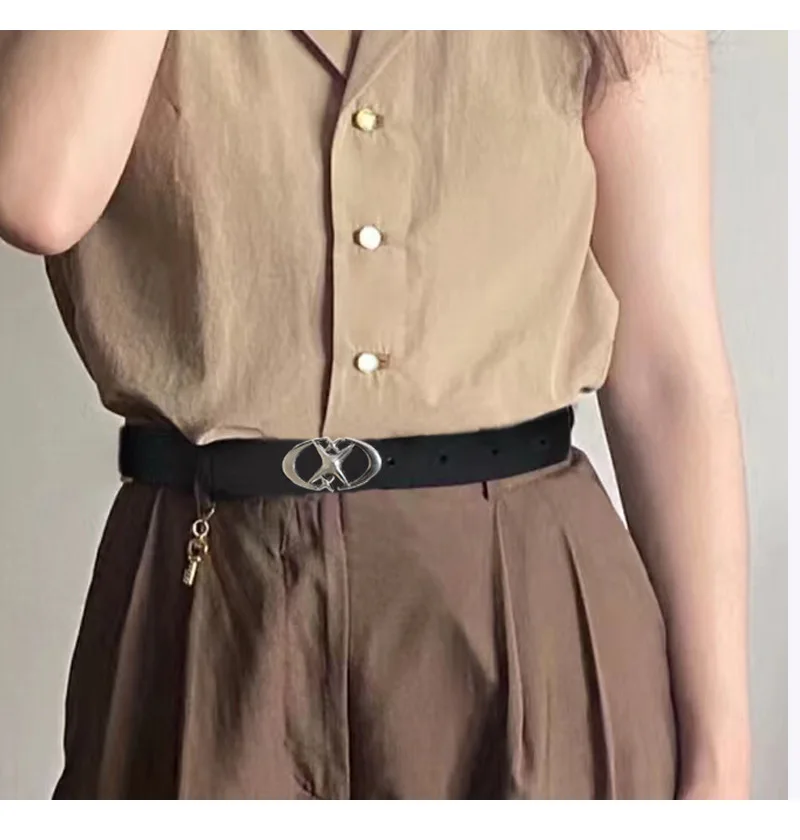 Vintage black belt with metal buckle, suitable for both men and women, simple, decorative, fashionable