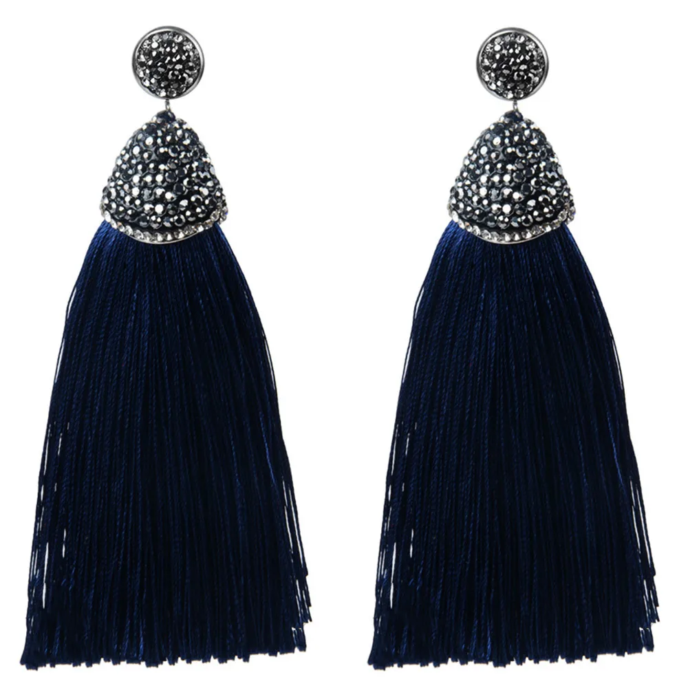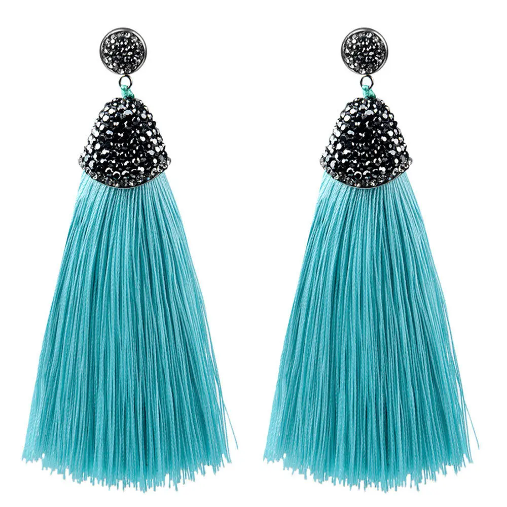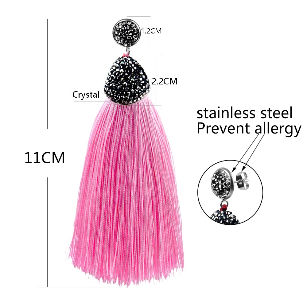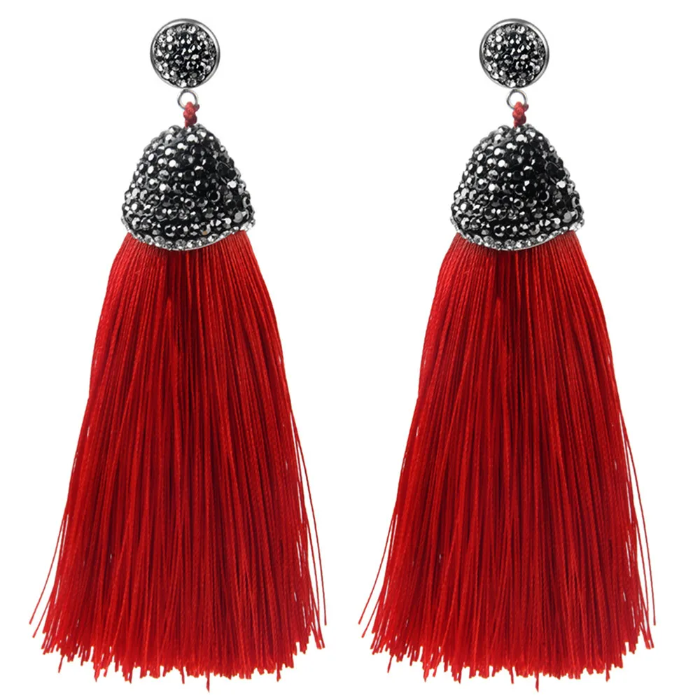 ·       Name: Vintage Bohemian Crystal Long Tassel Earrings Women Rhinestone Charm Red Pink White Silk Dangle Drop