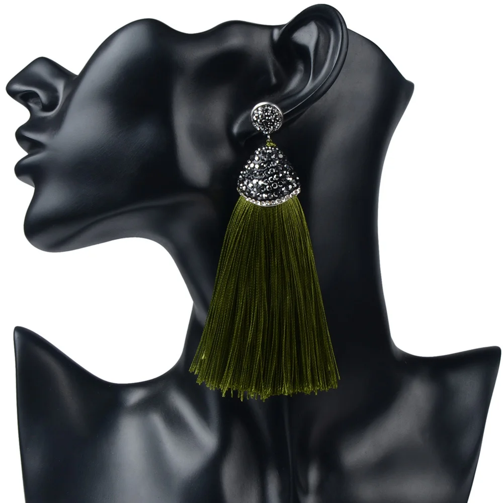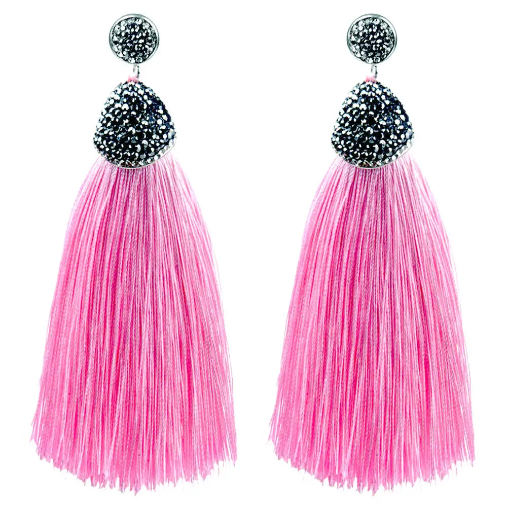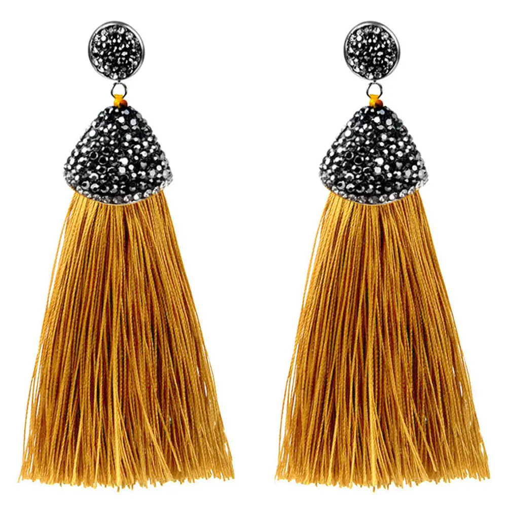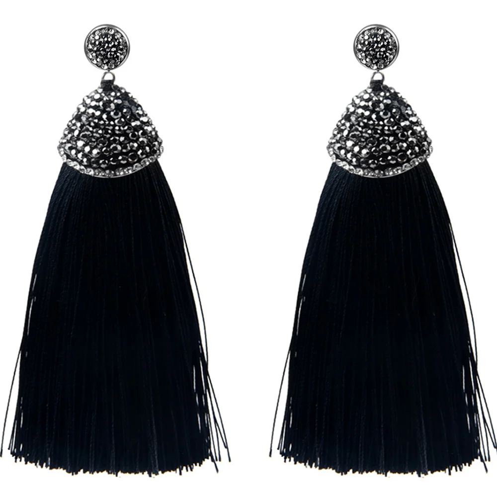 ·       Name: Vintage Bohemian Crystal Long Tassel Earrings Women Rhinestone Charm Red Pink White Silk Dangle Drop