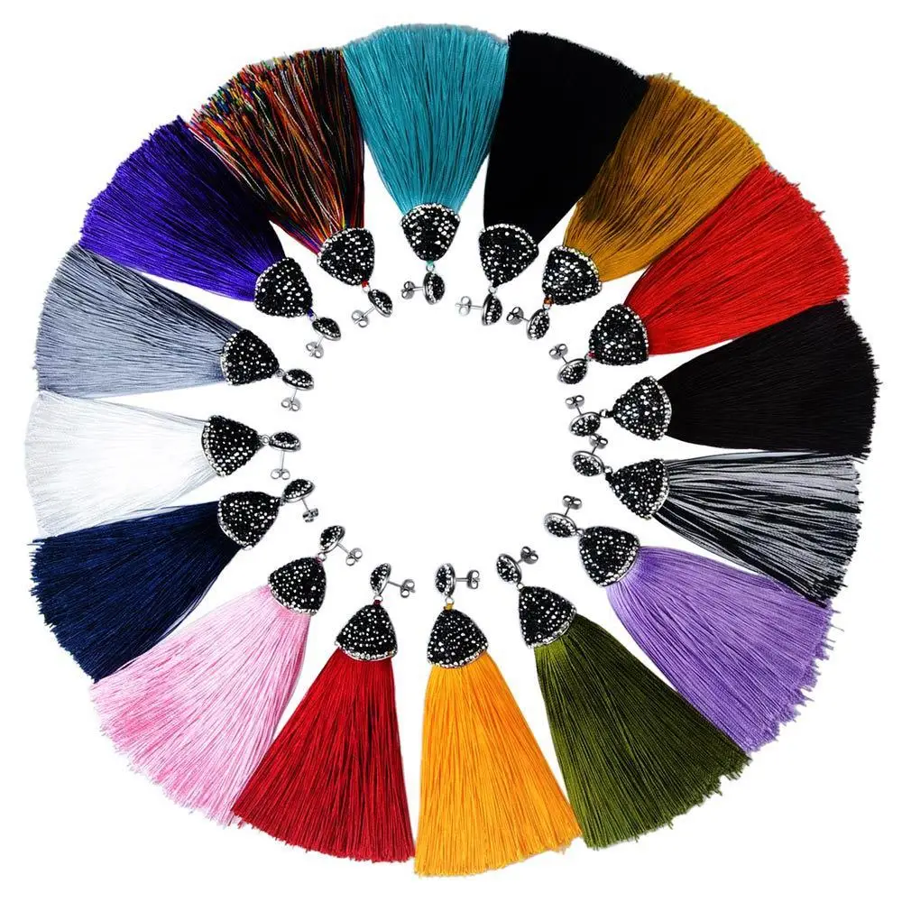 Vintage Bohemian Crystal Long Silk Tassel Earring Women Rhinestone Charm Stainless Steel Dangle Drop Earrings Boho Jewelry
