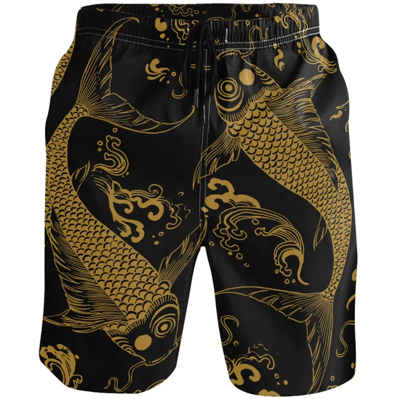 Vintage Chinese Carp Dragon 3d Printed Beach Shorts Street Short Pants Men Summer Loose Swim Trunks Quick Dry Board Shorts
