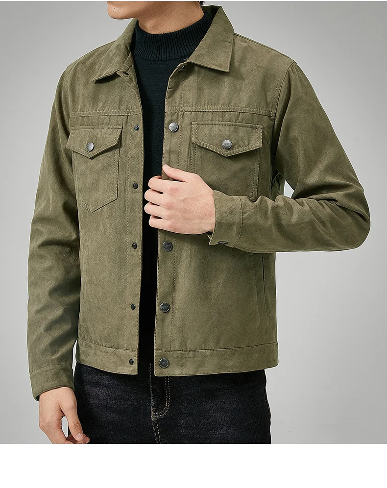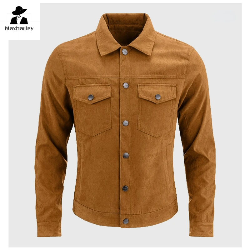Vintage Deerskin Fleece Jacket Men’s 2024 Autumn Casual Baseball Collar Windproof Jacket Men’s Light Luxury Short Slim-fit Coat