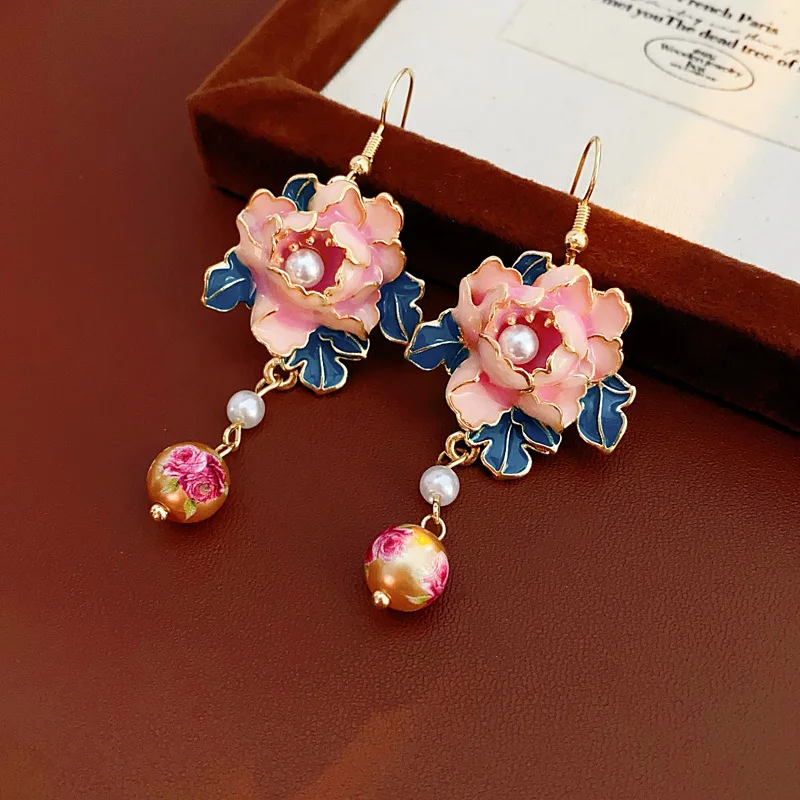 Vintage Dripping Flower Pearl Ear Hooks Vintage Superior Sense Tassel Drop Earrings Light Luxury Jewelry for Women