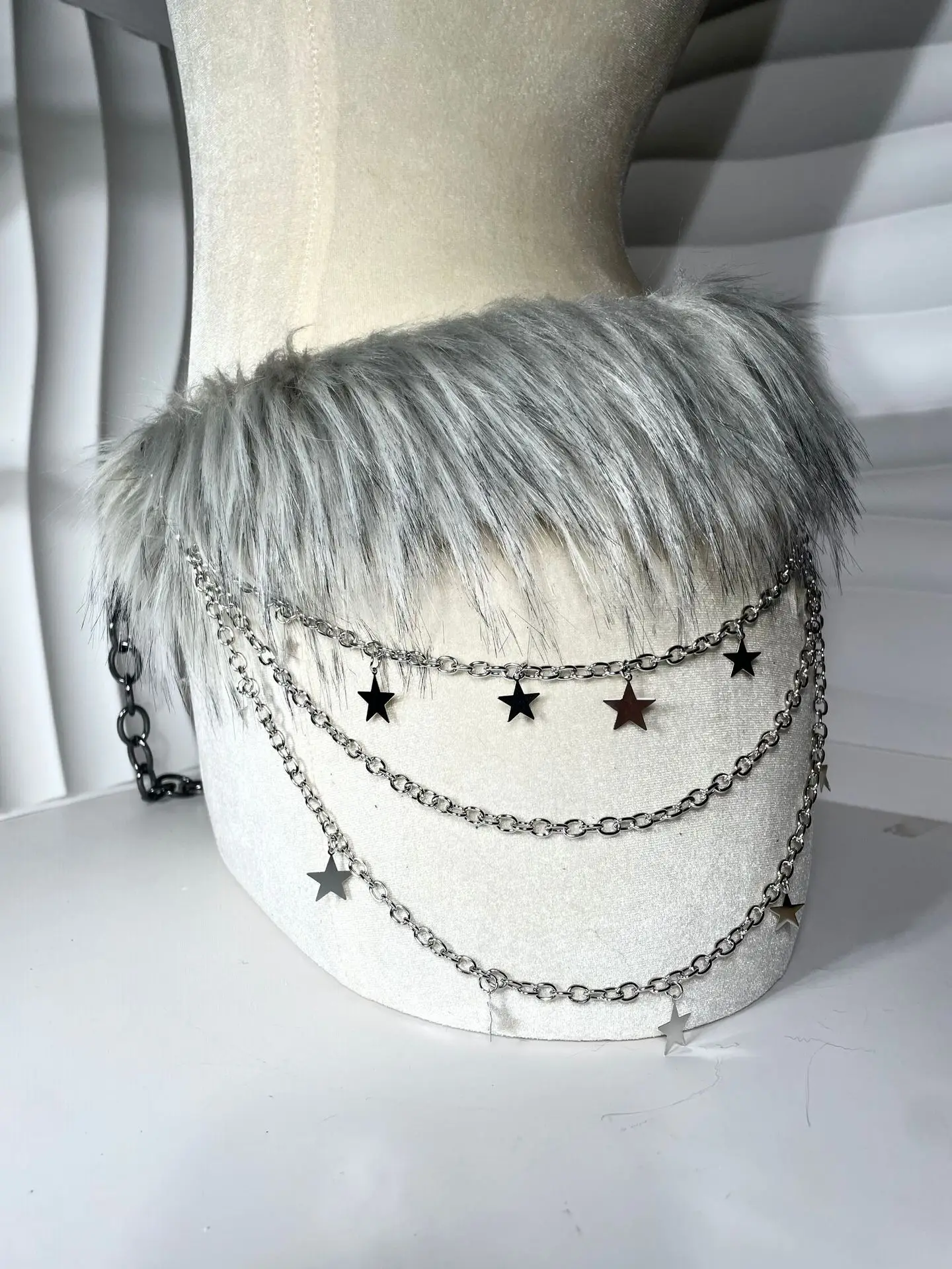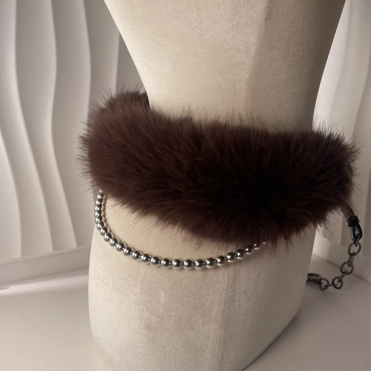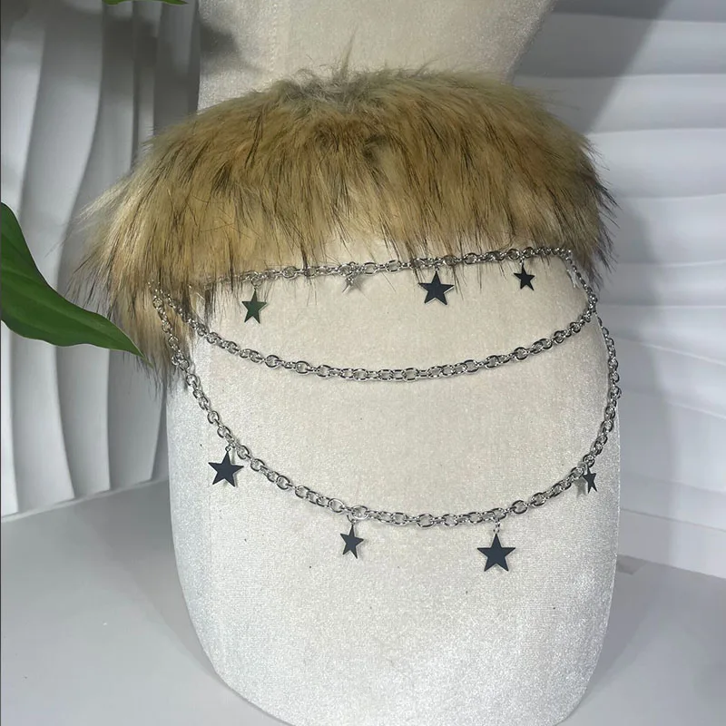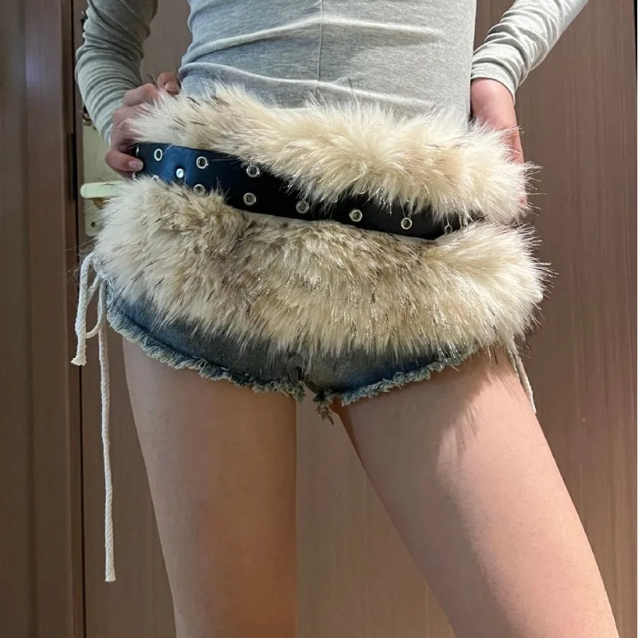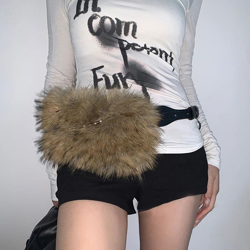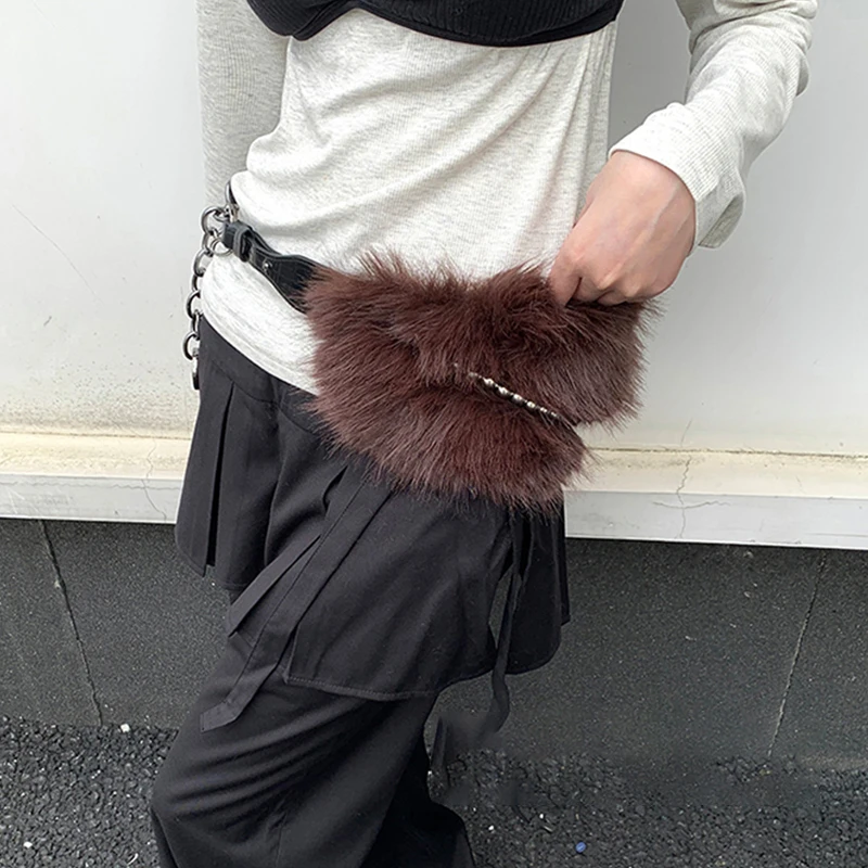 Vintage Faux Fur Belts Y2K Metal Bead Chain Plush Waist Chain Furry Fur Sexy Cowgirl Waistband Punk Belt Jeans for Night Club