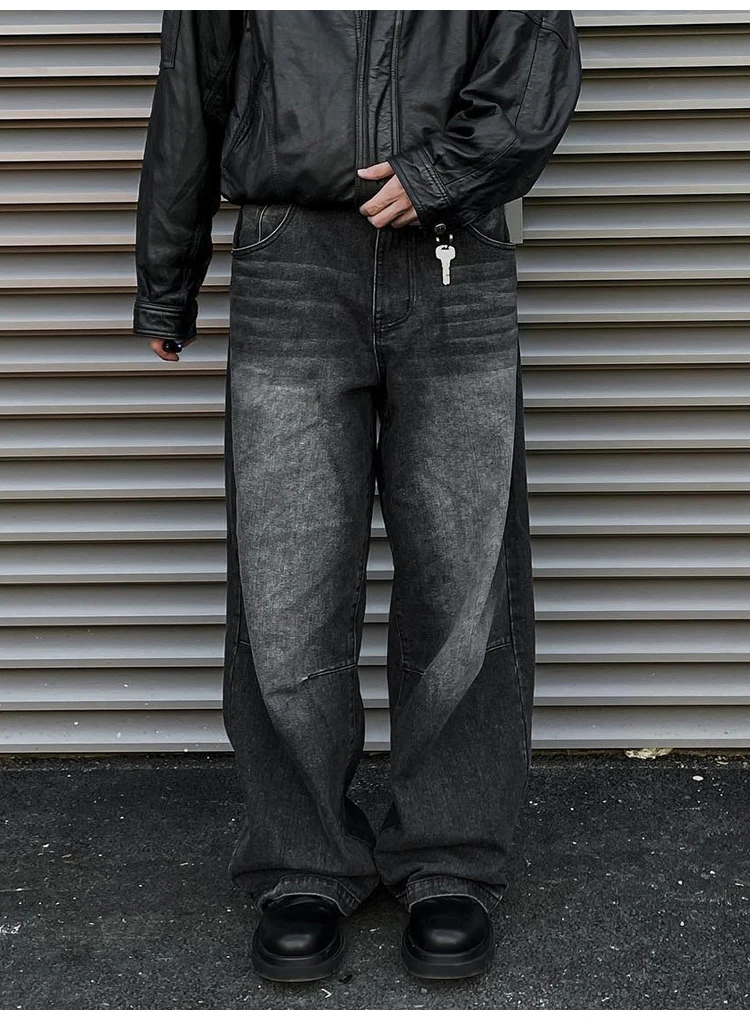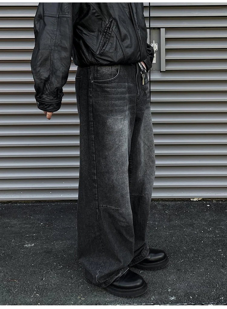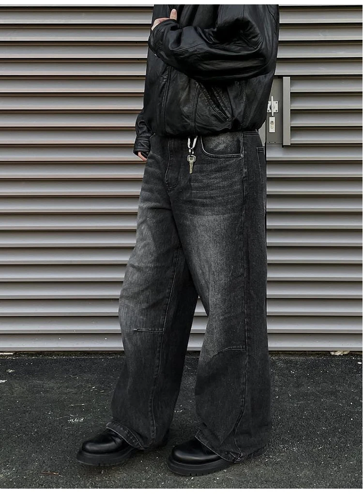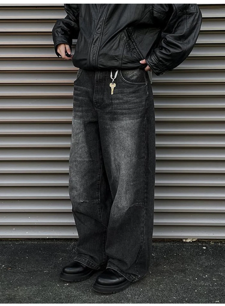 Vintage Loose Fitting Jeans For Men, Washed Wide Leg Denim Pants, Y2k High Street Oversized Baggy Vintage Straight Leg Trousers