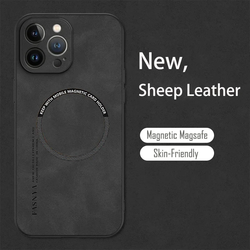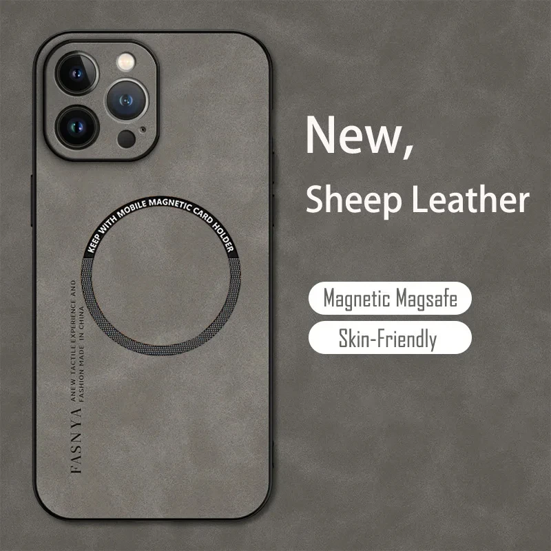 Vintage Magnetic Leather Soft Phone Case For Magsafe iPhone 15 14 13 12 11 Pro Mini Max X XR XS max 14 15 Plus Sheepskin Cover
