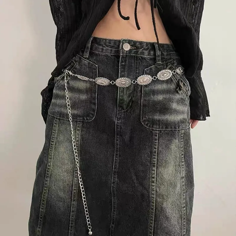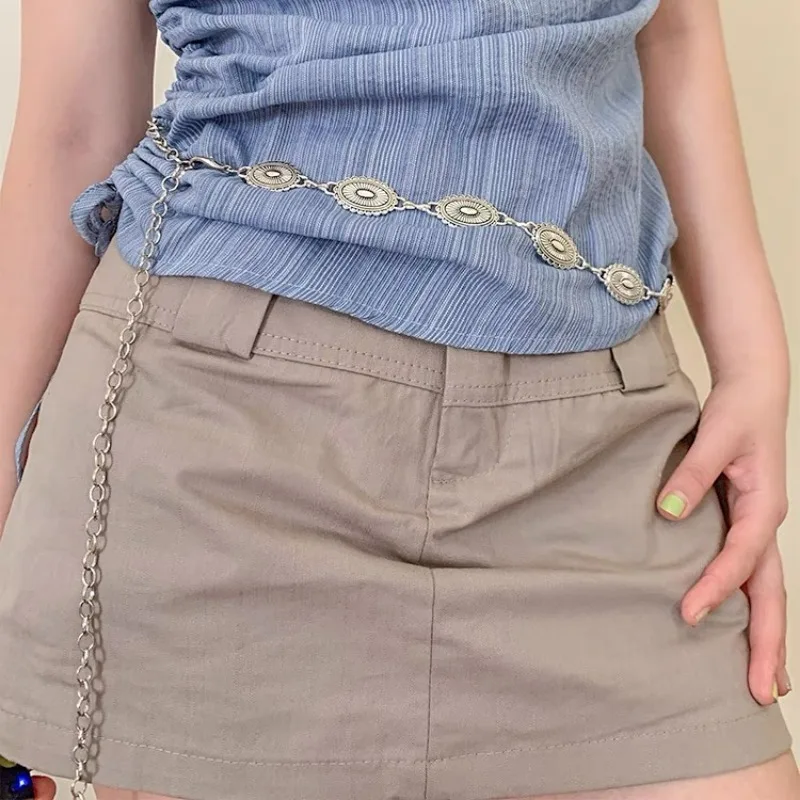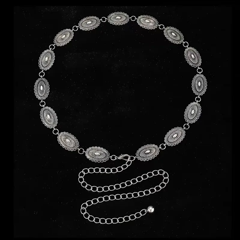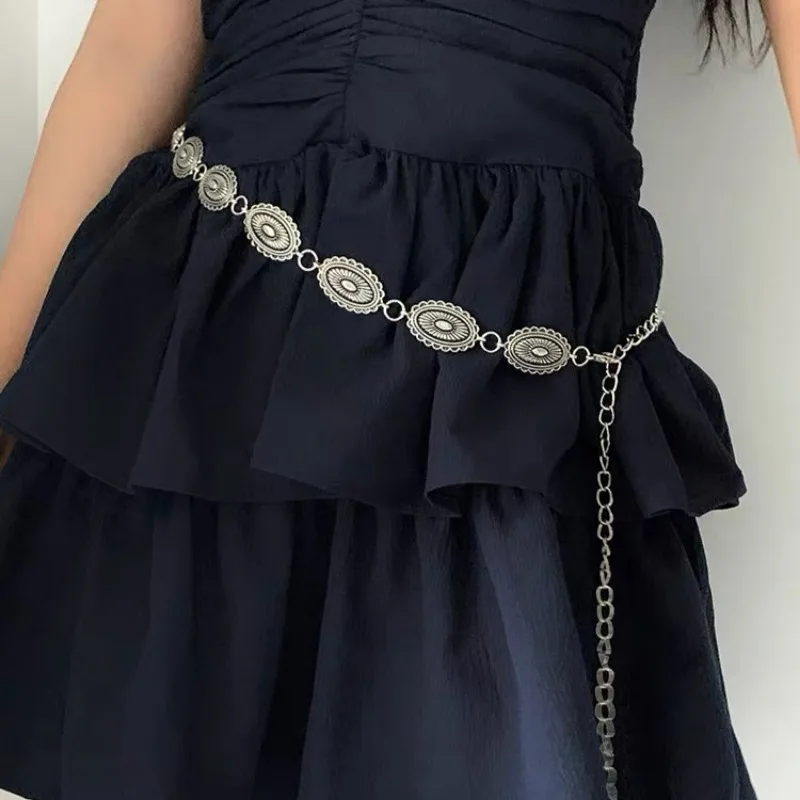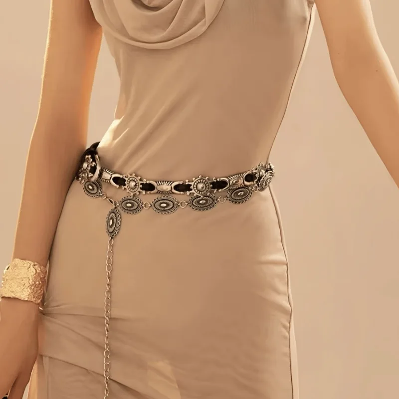 Vintage Metal Carving Waist Chain Ethnic Style Bohemian Versatile Belt Women Dress Sweater Accessories Girls Fashion Waistband