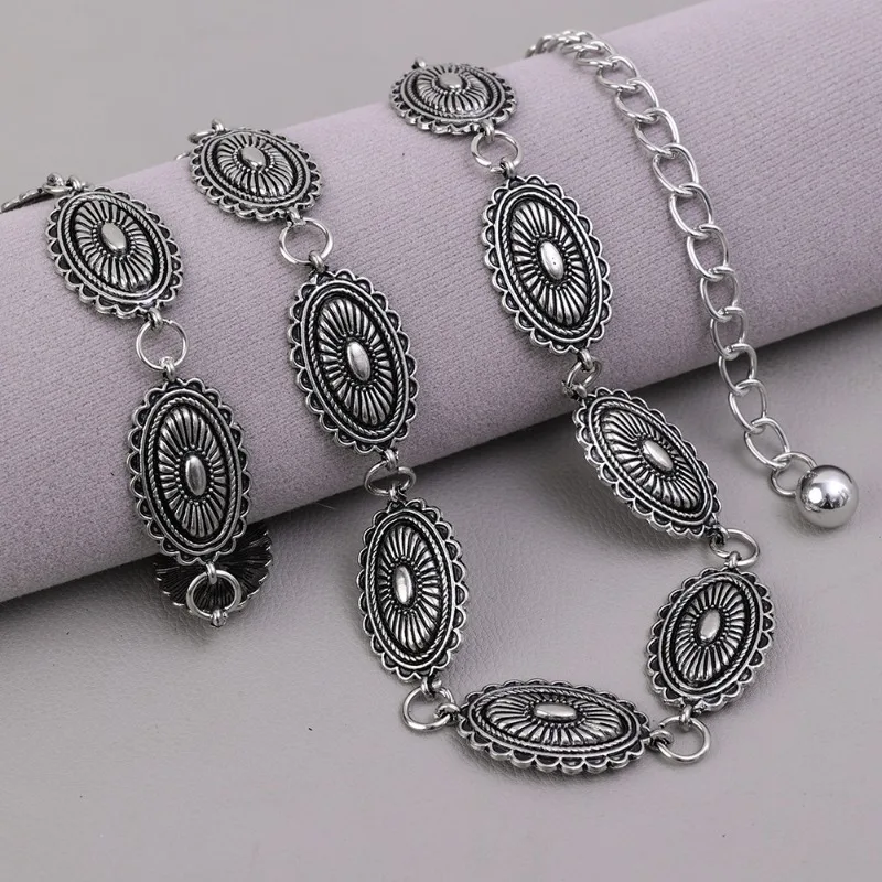 1 retro ethnic wind carved metal waist chain